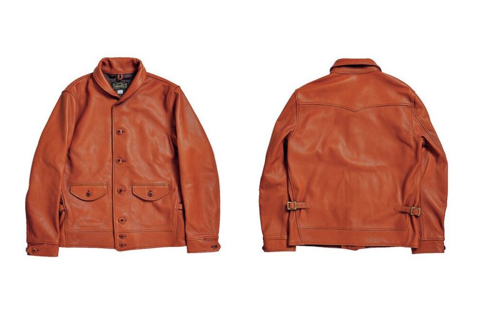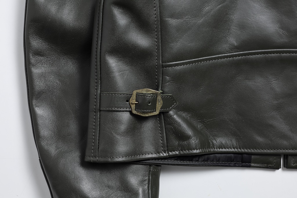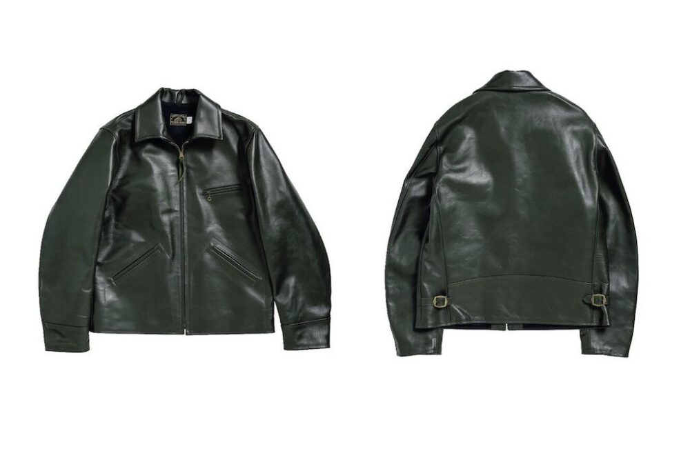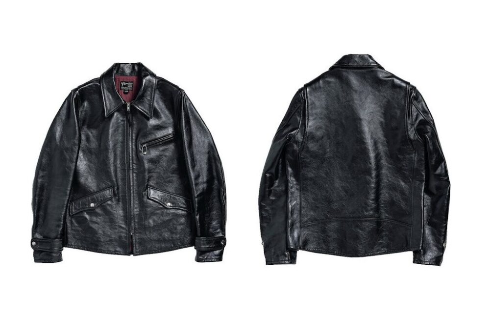 1940年代頃のヴィンテージのスポーツジャケットをモチーフに、オリジナルレシピで製作した上質なホースハイドを使用したトロフィークロージングが手掛けるレザージャケットの代表作。接ぎがなく美しい銀面の背面は目利きの職人が部位を厳選して手断ちした贅沢な1枚使い。ブランド刻印入りのオリジナル扇型ファスナーのほか、柄入りオリジナル鉄バックルを両サイドのストラップで採用。袖口カフス内には、冷気の侵入を防ぐために隠しリブを装備し、防寒性にも長けた秀逸なレザージャケットに仕上がっている。21万4500円(トロフィー ジェネラルストア TEL03-6805-1348 http://trophy-clothing.com/)