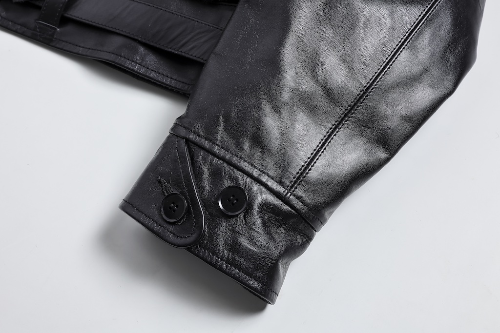 昨年の「LEATHERS DAY」に出演していたネイティブジャパニーズとの出会いで実現した世界初の“洗える馬革のGジャン”をワードローブに取り入れた彼らが、ヴィンテージのGジャンをベースにディテールやカラー、革の厚みなどを再考し、細部までこだわった1着を作りたいという要望から、姫路市内の若手タンナーと共に実験を重ね、瀬戸内産の牛革を使用した独自の鞣しによるウォッシャブルカウラフアウトがついに完成。デイリーに着こなし、布帛のように洗えるレザージャケットはレザー界にとってエポックメイキングなアイテムとなるはずだ。16万5000円(モトイケギャラリー TEL03-6447-1613 https://www.motostyle.jp)