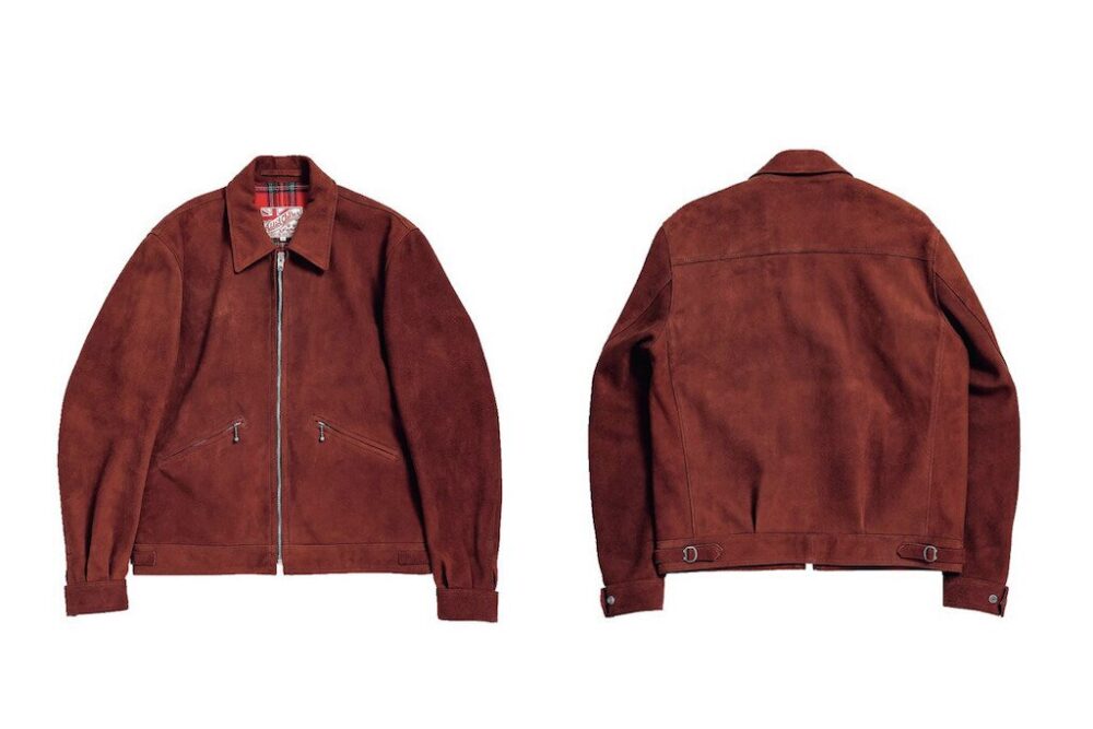 1950年代後半~1960年代中期に作られたイギリスのセンターファスナーデザインをモチーフにしたレザージャケット。袖口にファスナーが装備され、いわゆる定番として浸透するライダースジャケットデザインになる以前のスタイルで、よりクラシックに仕上げているのが特徴。マテリアルは柔らかくしなやかなディアスウェードを採用しているため、着用しはじめから肌馴染みの良いのも大きな魅力だ。ライニングには英国の伝統的なレッドウールタータンチェックを付けることで、より洗練された大人のジャケットを印象付けてくれるはずだ。20万9000円(アディクトクローズ info@addict-clothes.com ※BLACKも12月に同時発売予定)