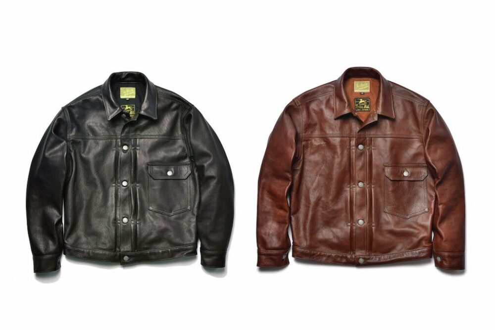 フロントプリーツやフラップポケット、バックルバックなど、デニムジャケットに存在したファーストタイプと呼ばれるデザインをレザー製スポーツジャケットに置き換えたモデル。素材には、アニリン仕上げのホースハイドを採用する。26万4000円