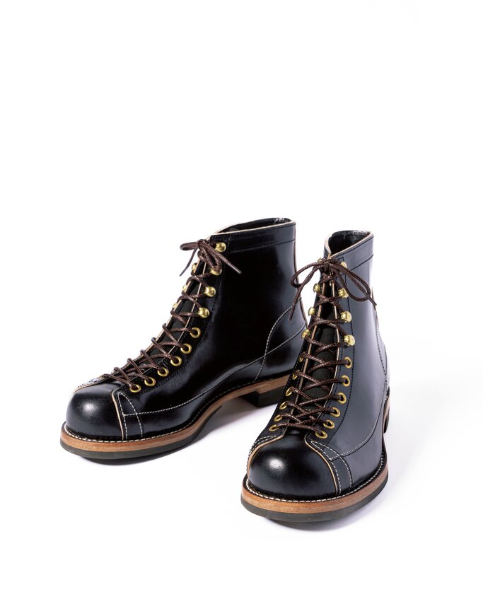 甲までフィッティングを調整することができるワークブーツ。馬の臀部の皮の内側を銀面とする希少なバトックレザーを使用。ブーツの強度に応えられるものとなるとさらに貴重な素材を妥協することなく採用している。17万6000円