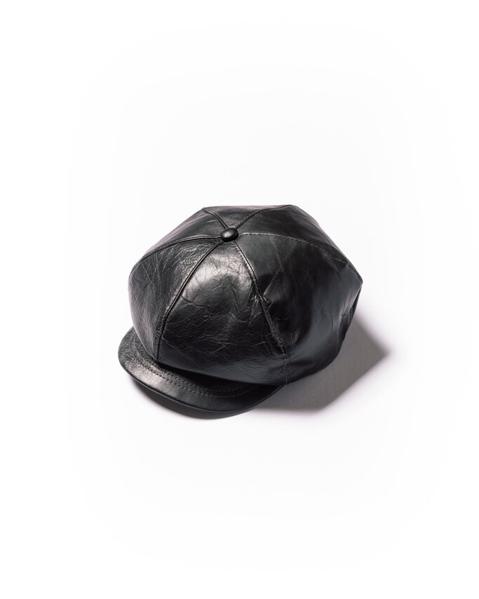 光沢があり、高い強度を誇るホースハイドで作ったニュースボーイキャップ。様々なアイテムが馬革で作られていたという、1930年代ごろの時代背景から着想を得て作られた。2万8600円