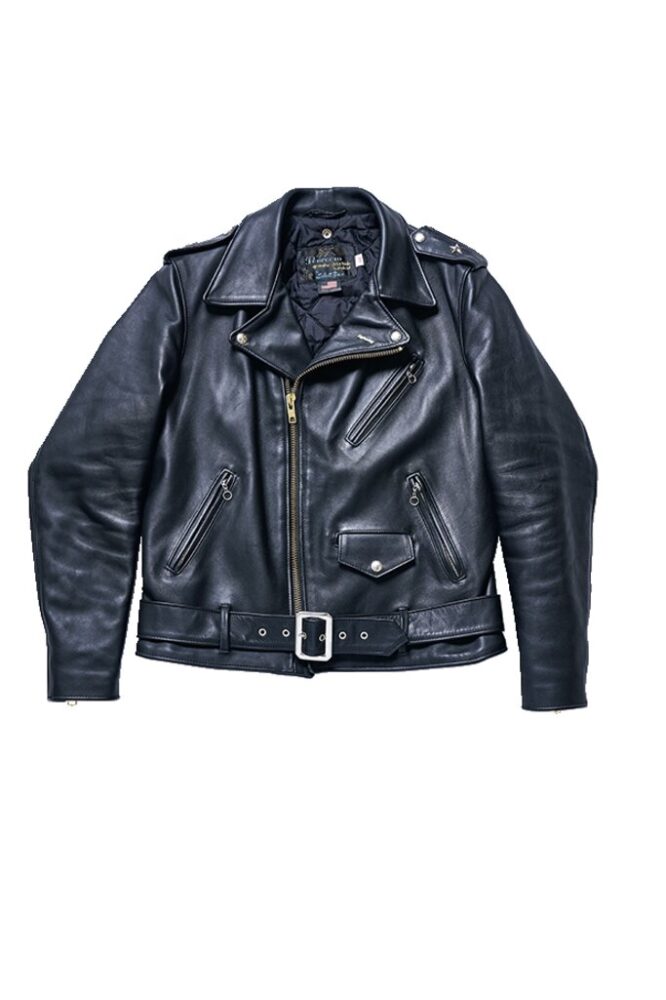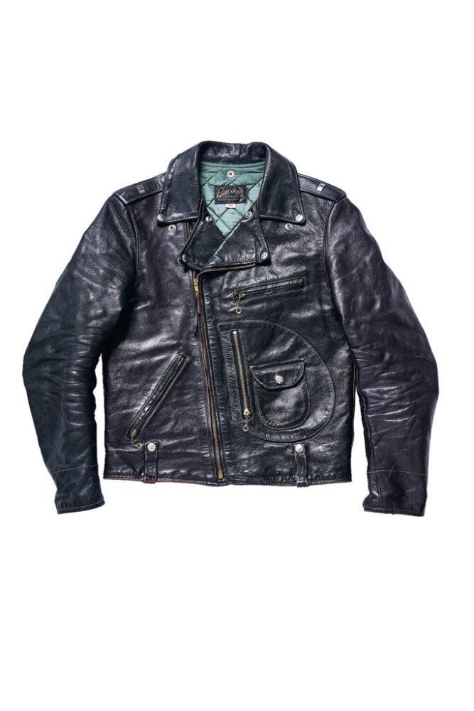 英国で生まれ、現地のライダーたちのカルチャーを反映することで育っていったライダースジャケット。アメリカ生まれのダブルのライダースジャケットよりもタイトな作りで、前傾姿勢で乗ることを念頭にしたパターンが特徴。サイドからフロントに向いたアジャスターベルトやボールチェーンなども英国式によく見られる。