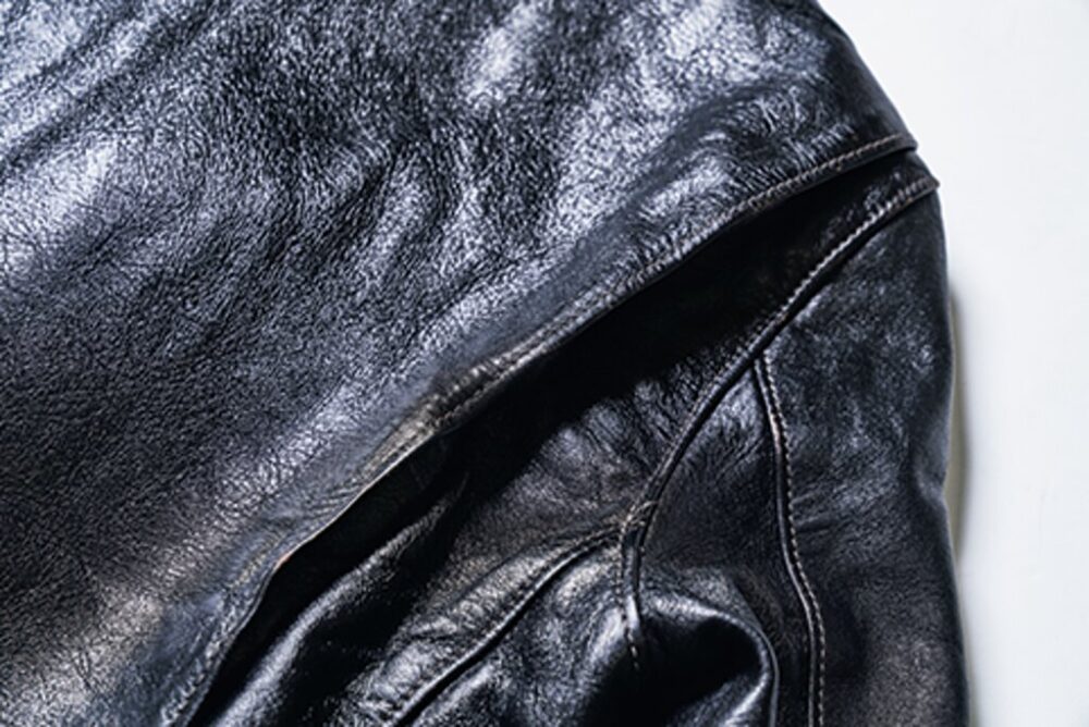 肉厚なレザーのために動きやすく可動域を確保するためにアクションプリーツがデザインされる場合が多い。