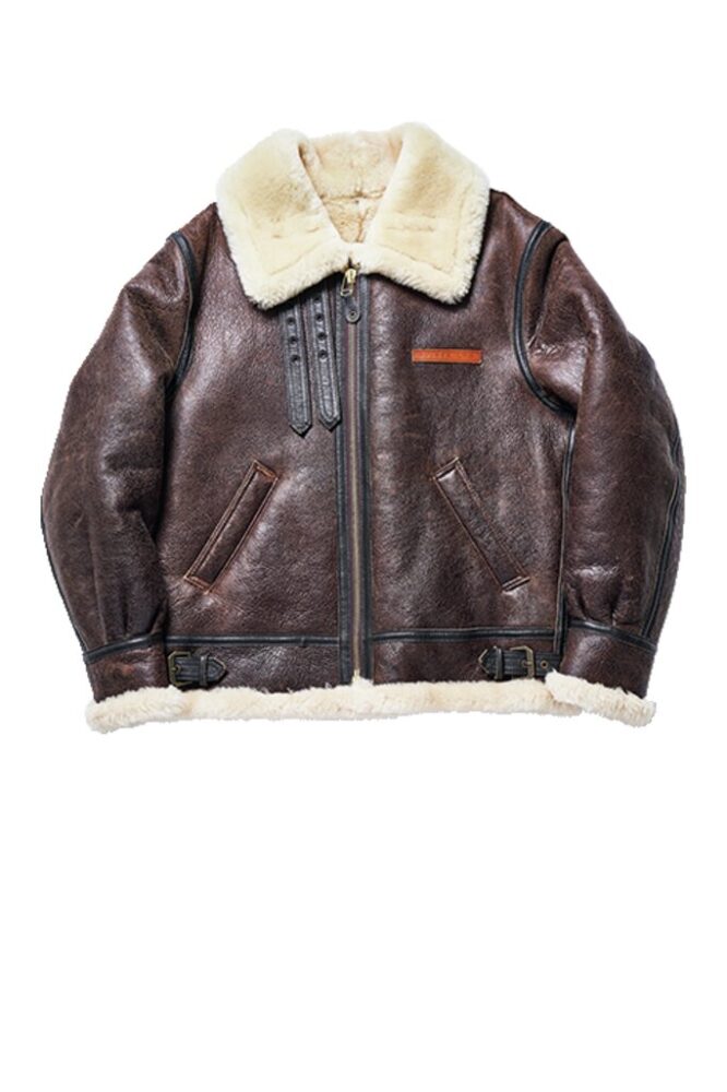 高高度を飛行する爆撃機のパイロットやクルーたちに支給されたフライトジャケット。シープシェアリングを贅沢に使用し、防寒性は折り紙付き。そのデザイン性の高さからカジュアルファッションのデザインとして今も多くのレザージャケットのデザインソースとなっている。