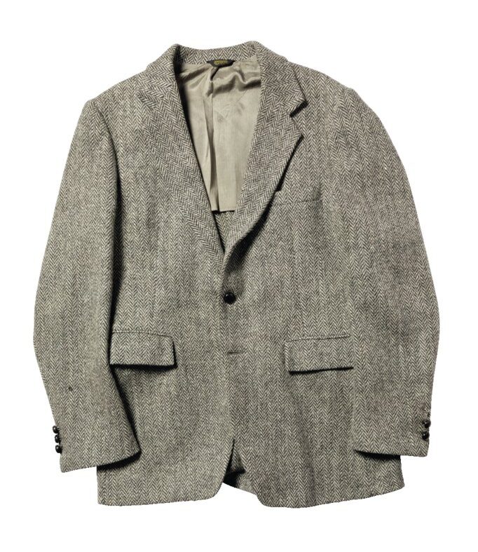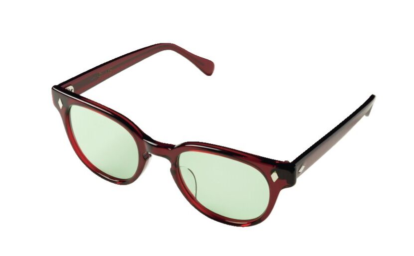 「アレンといえばなツイードJKT、古着です。メガネは『一寸一杯』製で、ウッディ・アレンのフレームをサンプリングしたもの。深い赤はうちの別注カラーです」