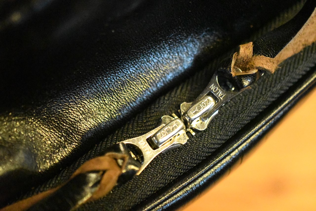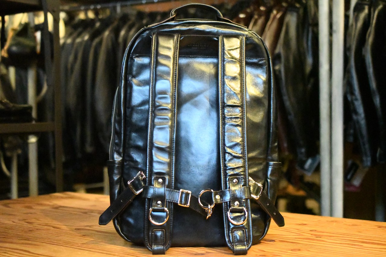 3点目がOPUSのINCEPTIONで人気のホースハイドのバックパックを、通常使用されるゴールド金具(ブラス)をシルバー金具(ニッケル)に変更したモデル。真鍮の無骨な雰囲気が緩和され、きれいな雰囲気を醸し出している。茶芯のホースハイドのため経年変化も素晴らしく、メンテナンス次第で綺麗にも無骨にも使える唯一無二の存在になるだろう。