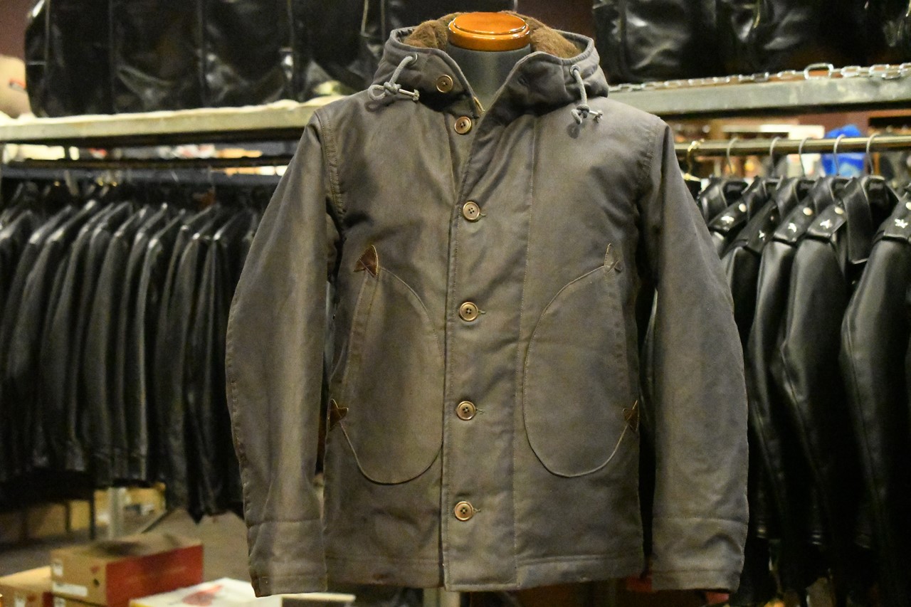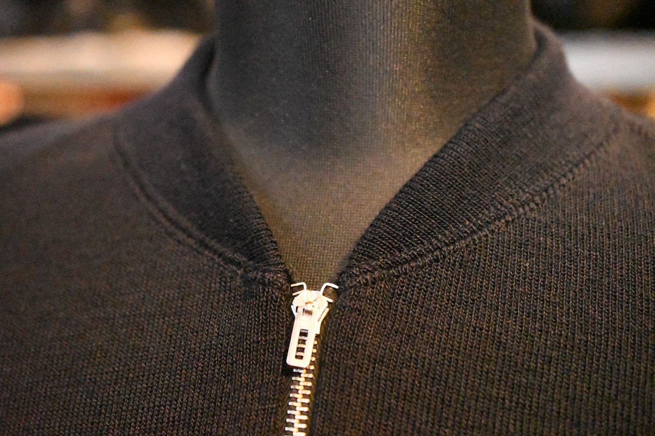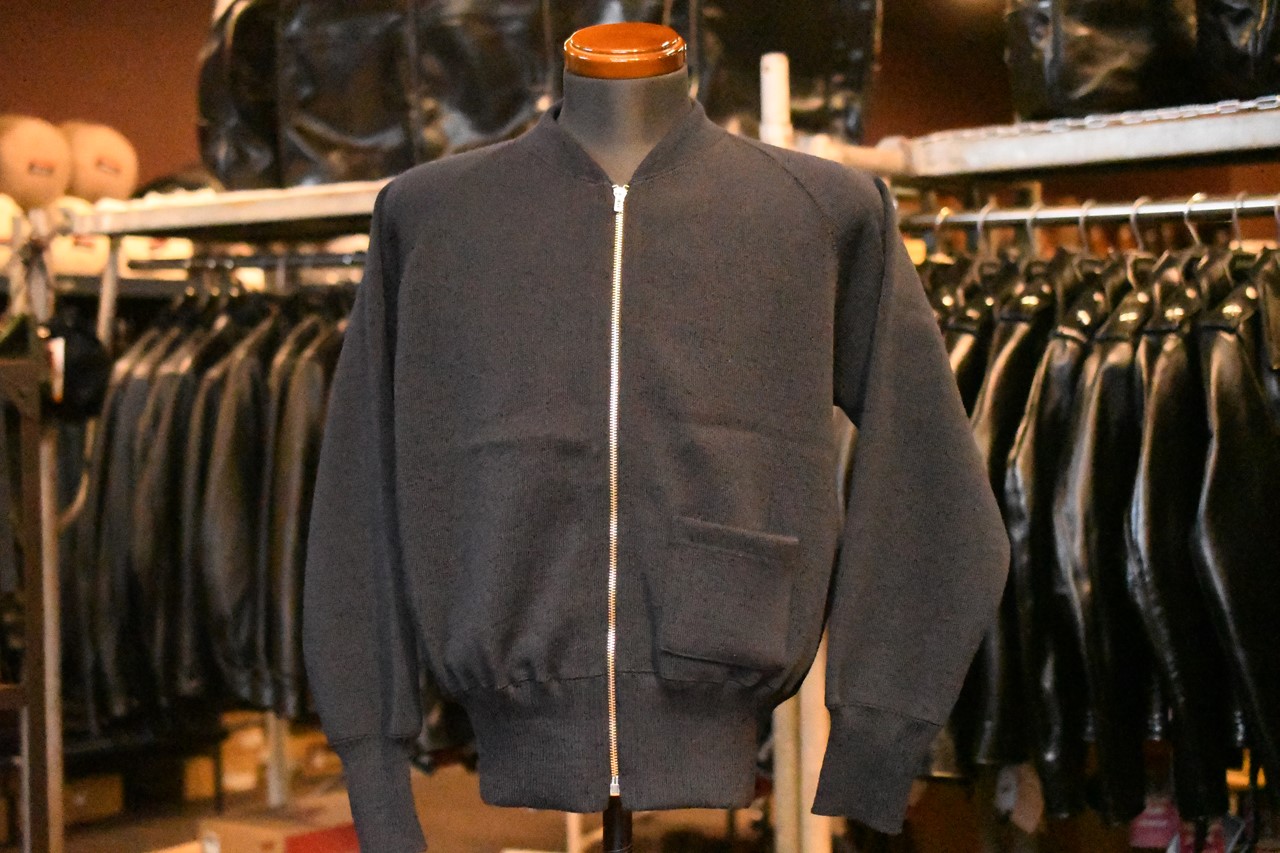 2点目がバズリクソンズ別注のC-2セーター。別注カラーのネイビー色はバーンストーマ―だけの限定。寒い時期にも革ジャンを着たい方にはマストアイテムだ。ネイビーカラーならお手持ちのレザーの色やパンツの色を選ばず着回しができる。上にレザーを着ても着膨れせず、かつ高い保温性になっている。シンプルで、カーディガン感覚に気軽に着用が出来て幅広いコーディネートが可能なので冬場に重宝するはずだ。