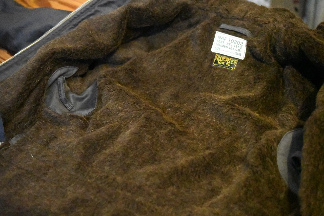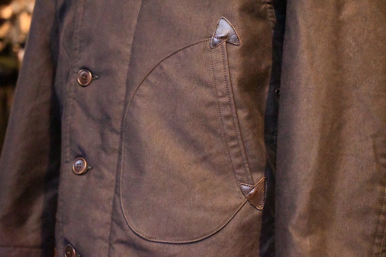 まず1点目がコリンボ別注のオブザーバーパーカ。グレーよりのネイビーカラーにブラウンのアルパカライニング。最大の特徴は通常のモデルと違い、表地と裏地の間に防風シートを挟み込むことでより風の侵入をシャットアウトし、より防寒性を高めている点だ。これさえあれば中は薄手でも真冬を乗り越えられる。バイク乗りの方にも最高におススメの一着だ。