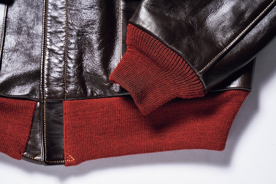 第二次大戦時のヒューバート・ゼムケ大佐率いる第56戦闘航空群「ゼムケズウルフパック」では、エースパイロットのA-2の裏地をレッドシルクに張り替え、士気を高揚させていたとか。ちなみに俺が買った赤リブA-2は、実は撃墜王になんら関係ない。エアロレザー社が納入したA-2のみに見られた赤リブだが、おそらく当時、工場で余っていたリブを着けただけのモノ。多分、深い意味なんてない。でもいいではないか。「赤」が付くだけで、こんなに熱くなるんだから、得をした気分だな。