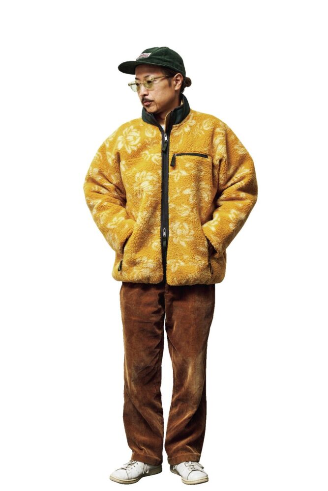そんな自分にとって、この冬リリースされたサンサーフのボアジャケットは衝撃的でした。だって大好きなレトロパイルそのままに、サンサーフらしい花柄にアレンジまでされているんです。見た目も機能も最高! 気に入り過ぎて、フード付きのモデル(リズムフーディー型)とベスト(レトロX型)も手に入れちゃいました。