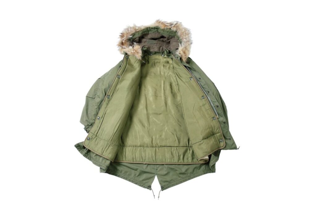 様々なテストサンプルを製作して極寒地での試験導入を行い、最終的に完成させたのが1951年3月に正式採用となったM‒51パーカーである。膝下まであるロングレングスと背面の特徴的なフィッシュテール、そして防風撥水加工がなされたコットンナイロン素材をアウターシェルに使い、気象条件に合わせてパイル地のライナーとコヨーテの毛皮が付いたフードを組み合わせて使用した、極めて優れた防寒衣料であった。