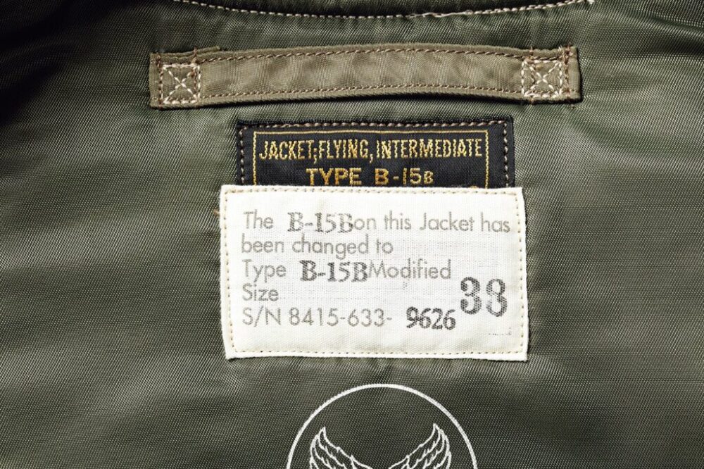 プロペラ機からジェット機へと変わっていく1940年代、パイロットの装備の変更に合わせジャケットも変更される。こちらは、元々ついていた襟を外し、ウールリブを縫い付けるという改良が加えられている。