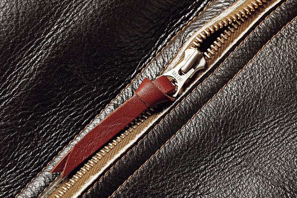フライトジャケットに欠かせないジッパー。「タロン」や「クラウン」「コンマー」ジッパーとメーカーは言わずもがな、形やロックシステムなどの機構も年代を判断するのに重要である。