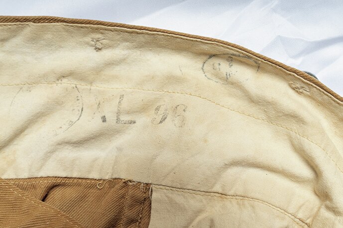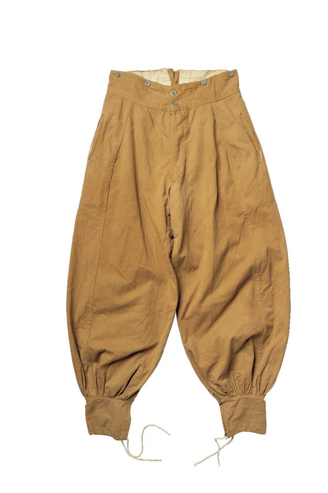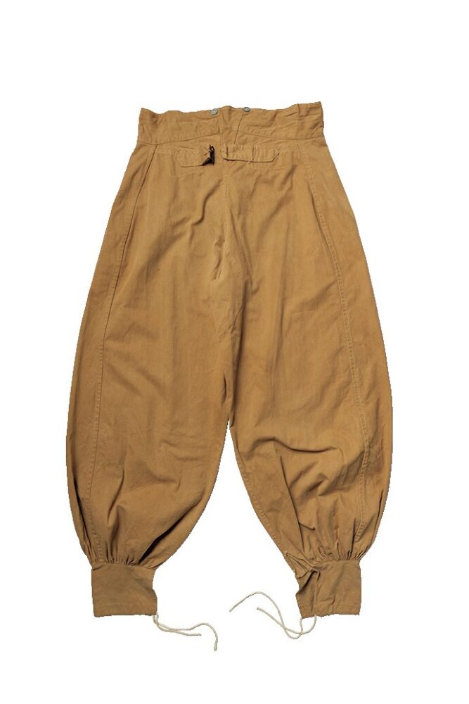 この年代のトラウザースは、ジョッパーズパンツのようなシルエットが特徴。このフランス軍のトラウザースは、裾にボタンやレースアップの付かない珍しいデザイン。内側のスタンプからフランス軍と判別できるのだ。参考商品