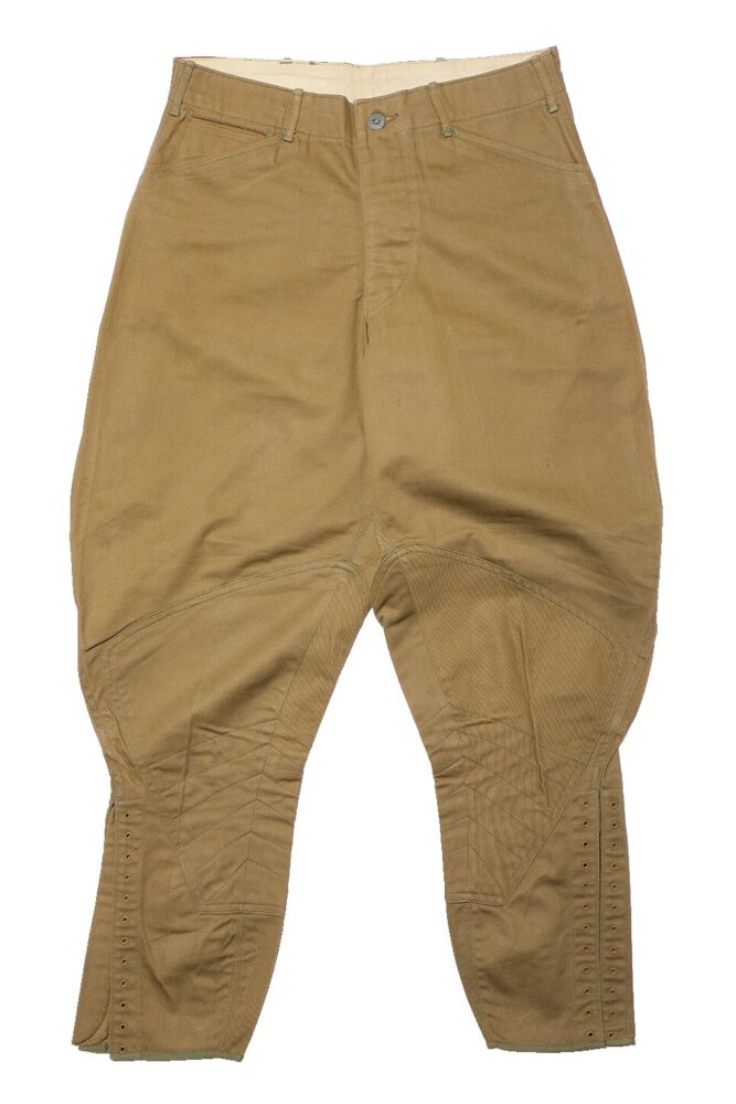 1930年代にアメリカ陸軍で支給されていた騎兵隊のジョッパーズパンツ。30年代になるとベルトループが付いているのが興味深い。騎兵隊は馬からバイクへと進化していくので、この手のパンツはこの年代まで。(編集部所有資料)