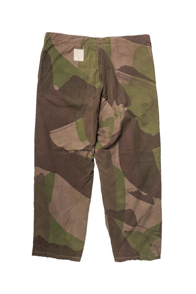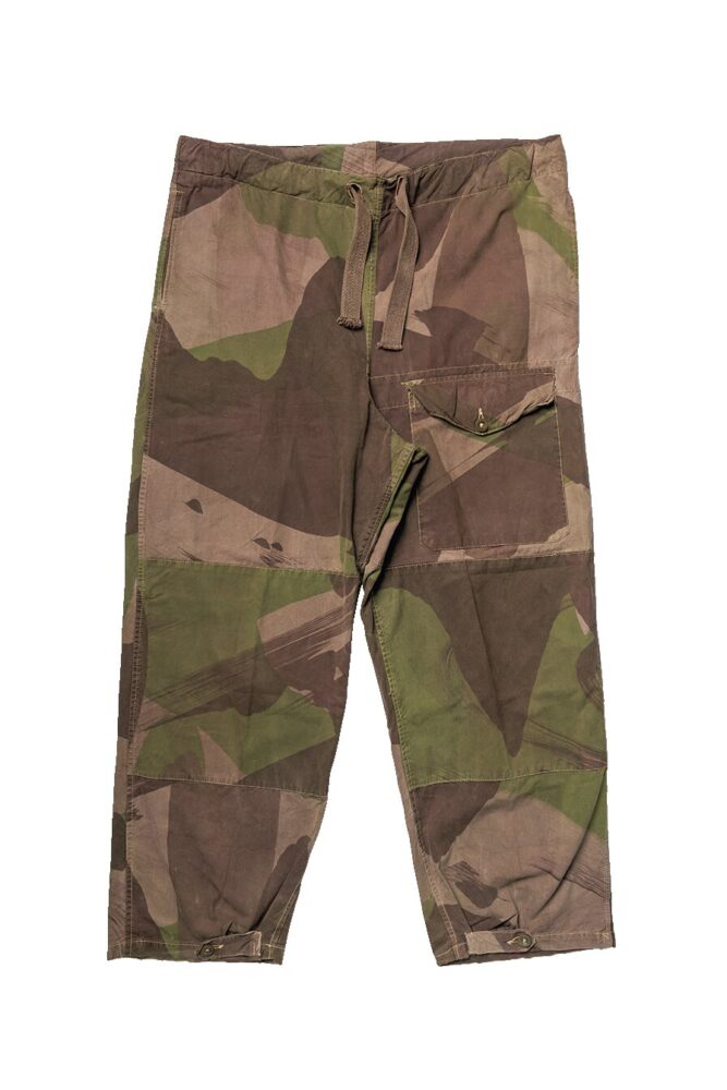 ミリタリーウエアを象徴する迷彩柄をいち早く取り入れたのはドイツ軍。それを追いかけるかのように、英国軍で1942年頃に採用されたのが、このブラッシュストロークカモである。特殊部隊であるSAS用のパンツ。16万9400円