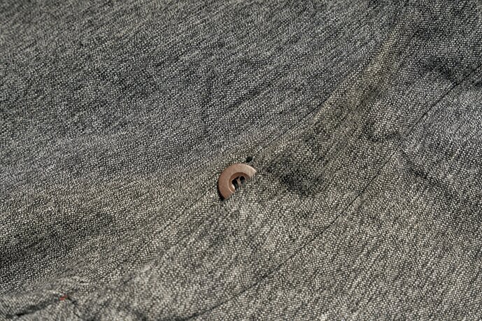 レアピースであるイタリア海軍のユーティリティパンツ。ワークウエアで使われていたブラックシャンブレーのような生地がおもしろい。この時代からワークウエアのような役割を担うユーテリティウエアが誕生する。5万9400円