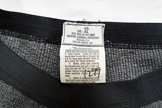 1990年代に米軍で採用されていたケミカルプロテクティブユニフォームのライナーとして使われていたもの。内側のタグを見ると、特殊部隊向けのユニフォームであるCPUで使われていたもので、94年に生産された。起毛素材が使われており、独特な存在感。1万7600円
