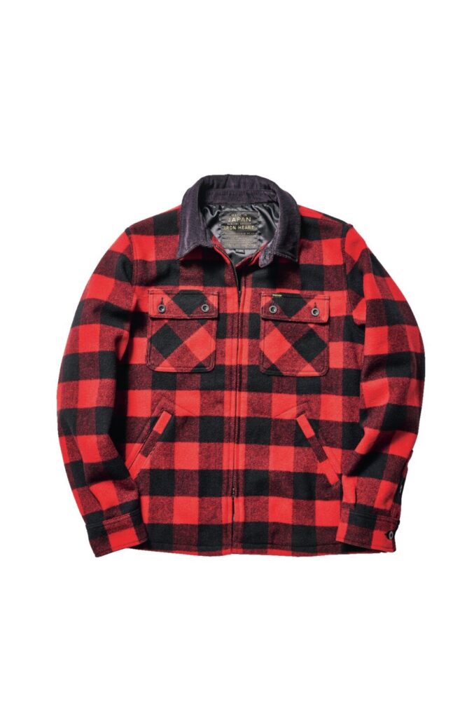 程よく肉厚な14.6ozのバッファローチェックウールボディのブッシュジャケット。フロントはダブルジップで、ジップ裏に風の侵入をブロックする前立てを装備。5万9400円