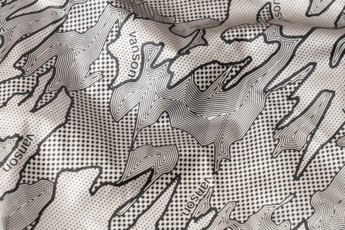 防寒性を高める着脱式フードの首回りにデザインされた前立て(上)や、裏地のアルミプリントによる熱反射保温機能(下)を搭載する。