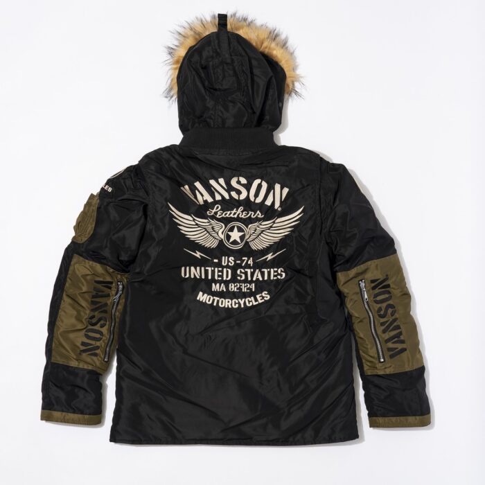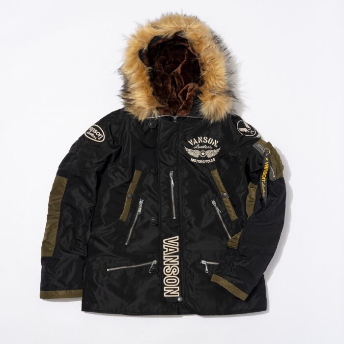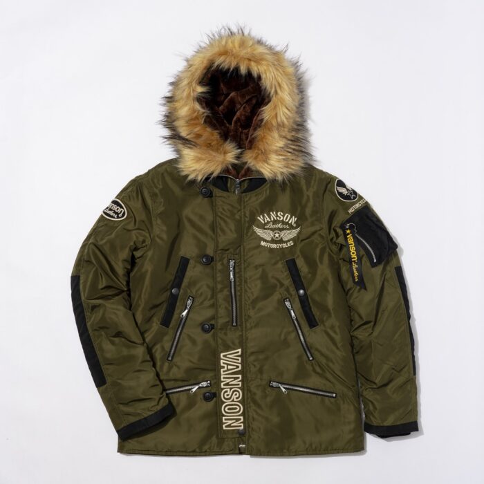 防寒性に優れたミリタリーアウターがN-3B だ。裏地にアルミプリントを施し保温性を高めている。またフード部分が着脱可能なので、取り外せばヘルメットを被った際に干渉せずスッキリと着こなせる。スマホなどの小物をしっかり収納できるジッパーポケットも、バイクユーザーにとって嬉しいデザインだ。