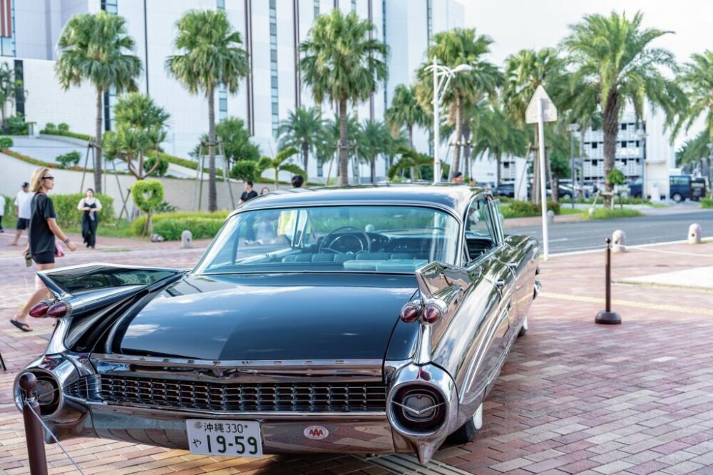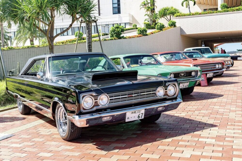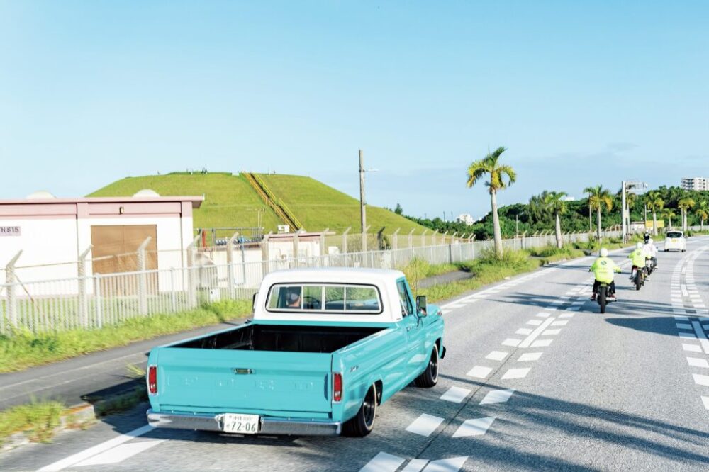 イベント当日朝に、会場付近にてモーニングクルーズを開催。道路脇に椰子の木が並ぶ景色は沖縄ならでは。国産からアメリカ車、英国車などスタイルは様々だが、イベント名の通りストリートでリアルに走ることを証明。