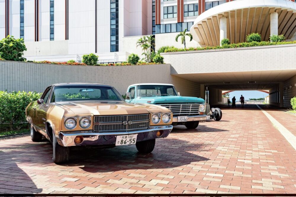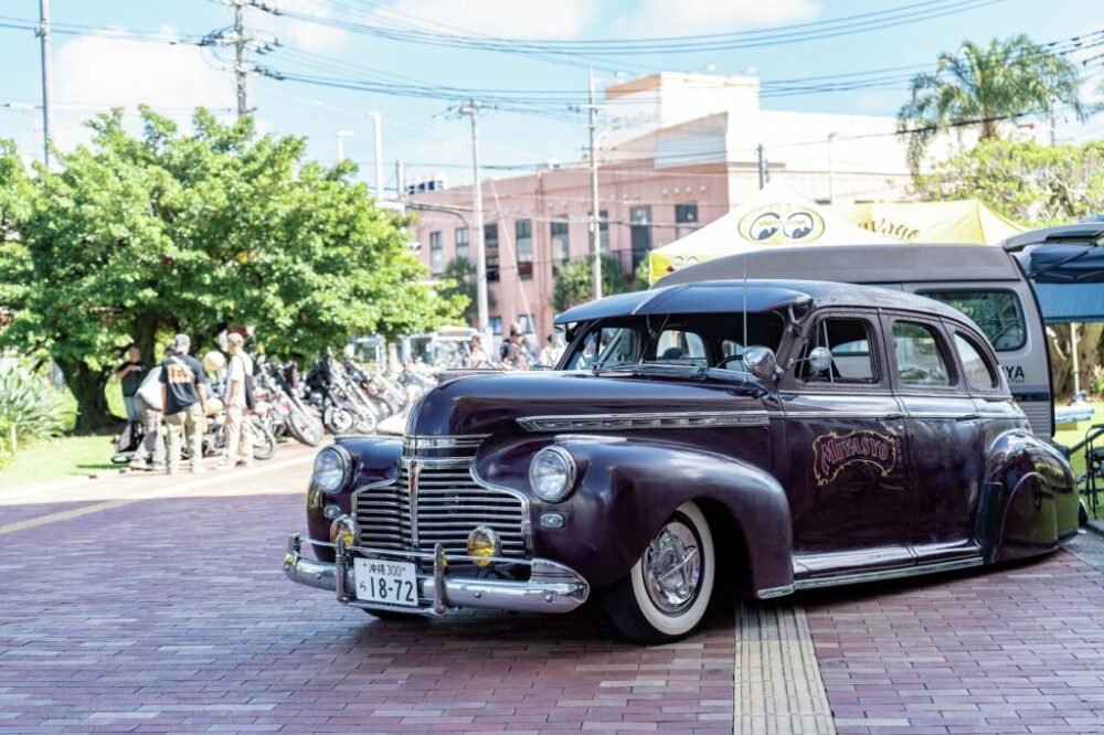 北谷町美浜、アメリカンヴィレッジの外れにあるジバゴコーヒー前の遊歩道がイベントの開催地。アメリカンクラシックカーやカスタムモーターサイクルのショーを軸に据え、物販やアートショーなど、カスタムカルチャーの枠の中で様々なコンテンツが用意される。関東や東海の数百台の車両が集まるビッグイベントに比べれば、決して大きな規模ではない、しかし、美浜2&4カスタムストリートは、沖縄特有のカルチャーが色濃く表れた唯一無二のイベントである。