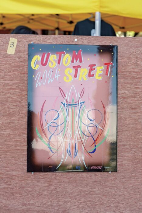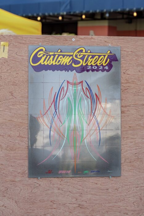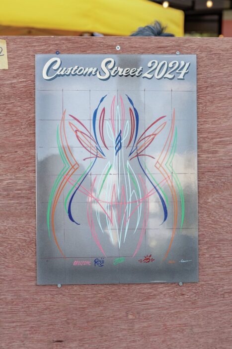 まず特筆すべき点は、イベントの主催者がピンストライパー/サインペインターであるということ。2&4カスタムストリートは、昨年まで2&4カスタムマニアックスという名前で、ペイントショップ『8ポイント』の仲西氏が主催し、今年からペイントショップ『ドローワーズ』のKENT氏にバトンを受け継ぎ、リニューアル第一回目を迎えたイベントだ。
