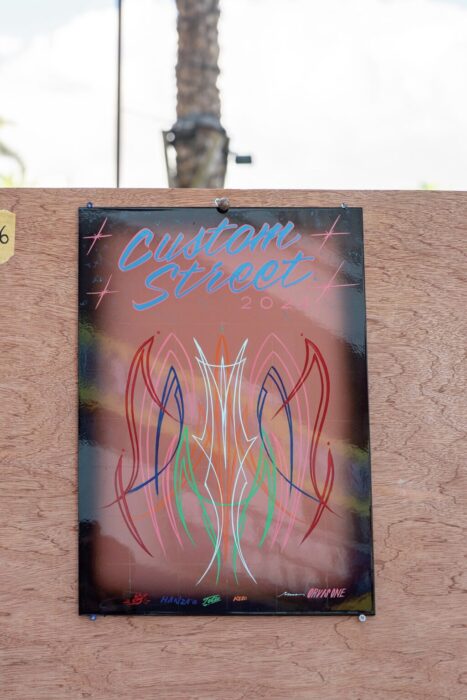 そして、メインコンテンツの一つと言えるペイントジャムは、お客さんたちの目の前でアーティストが交互に筆を取ってその場で即興のアートを生み出し、会場を沸かせた。ショーイベント内でピンストライパーのコンテンツが見られるのは他のイベントでも珍しくないが、2&4カスタムストリートはショーコンテンツと並ぶほどにアートの世界観が色濃いことが最大の特徴と言えるだろう。
