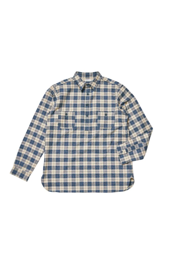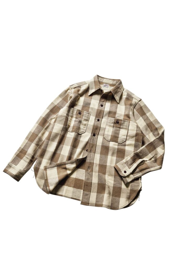 コットンのフランネルシャツが生まれた最初期と思われる1930年代に作られたプルオーバーのモデルをもとに再現。ウールのような発色でありながらコットン素材というのが特徴で、着用と洗濯を繰り返すことで褪色して風合いを増す。細かい運針もこの時代ならではの特徴だ。