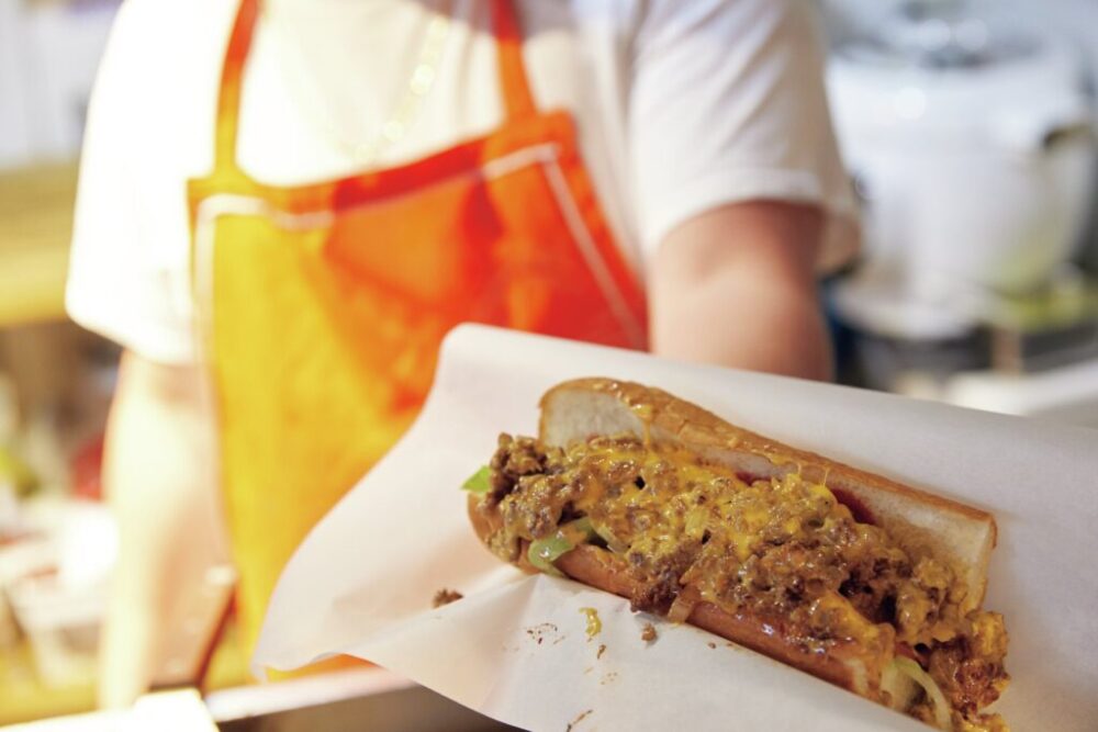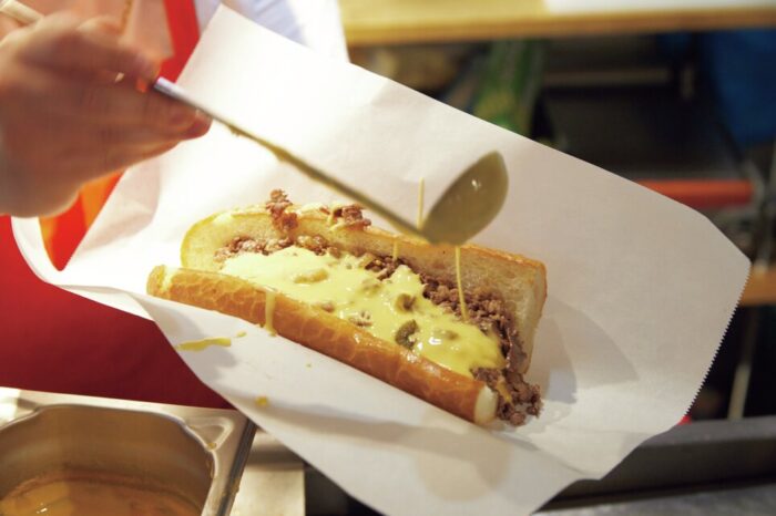 チョップドチーズと人気を二分する『チーズステーキ』。「千葉雄喜君の『チーム友達』でウィル・スミスとコラボしたときにも出てきたフィラデルフィアの名物サンドです」。1300円