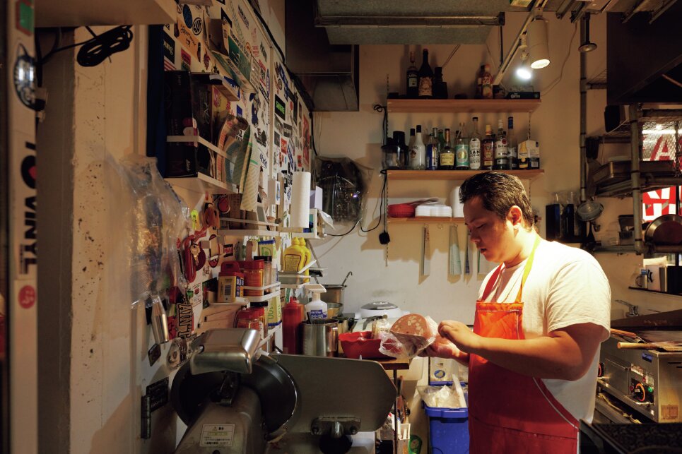 もっともココを“本物”にしているのは料理に尽きる。「チョップドチーズ・サンドイッチ」。鉄板の上で刻んだミンチ肉とチーズをはさんだ日本ではめったにお目にかかれない味を、宮本さんはNYにある人気店『ハジーズ』で学んだ。しかもその店はスヌープ・ドッグやディプセットなどラップスターが常連に名を連ねるんだから、DOPE(ヤバい)が過ぎる。