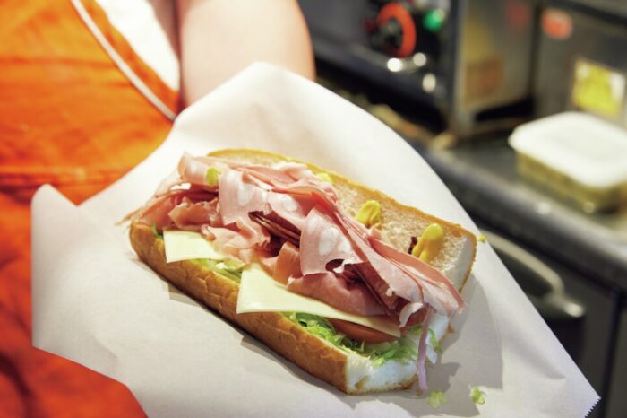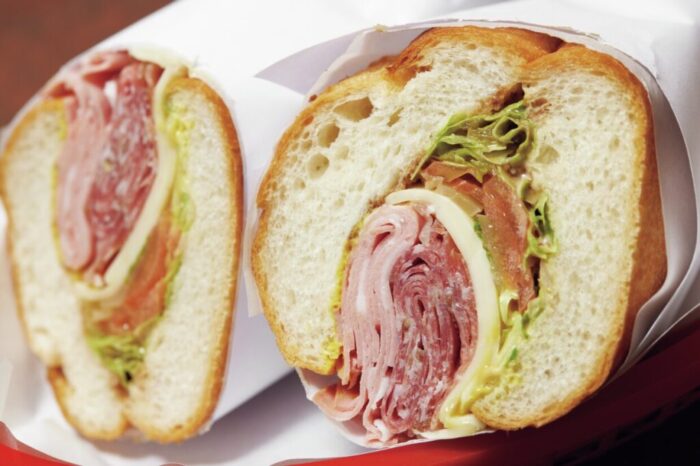 吉祥寺の名前を冠したサンド。モルタデッラ、サラミ、プロシュートなどのハム類に野菜とモッツァレラチーズなどをたっぷり入れた贅沢な一品。在日外国人に一番人気とか。2000円
