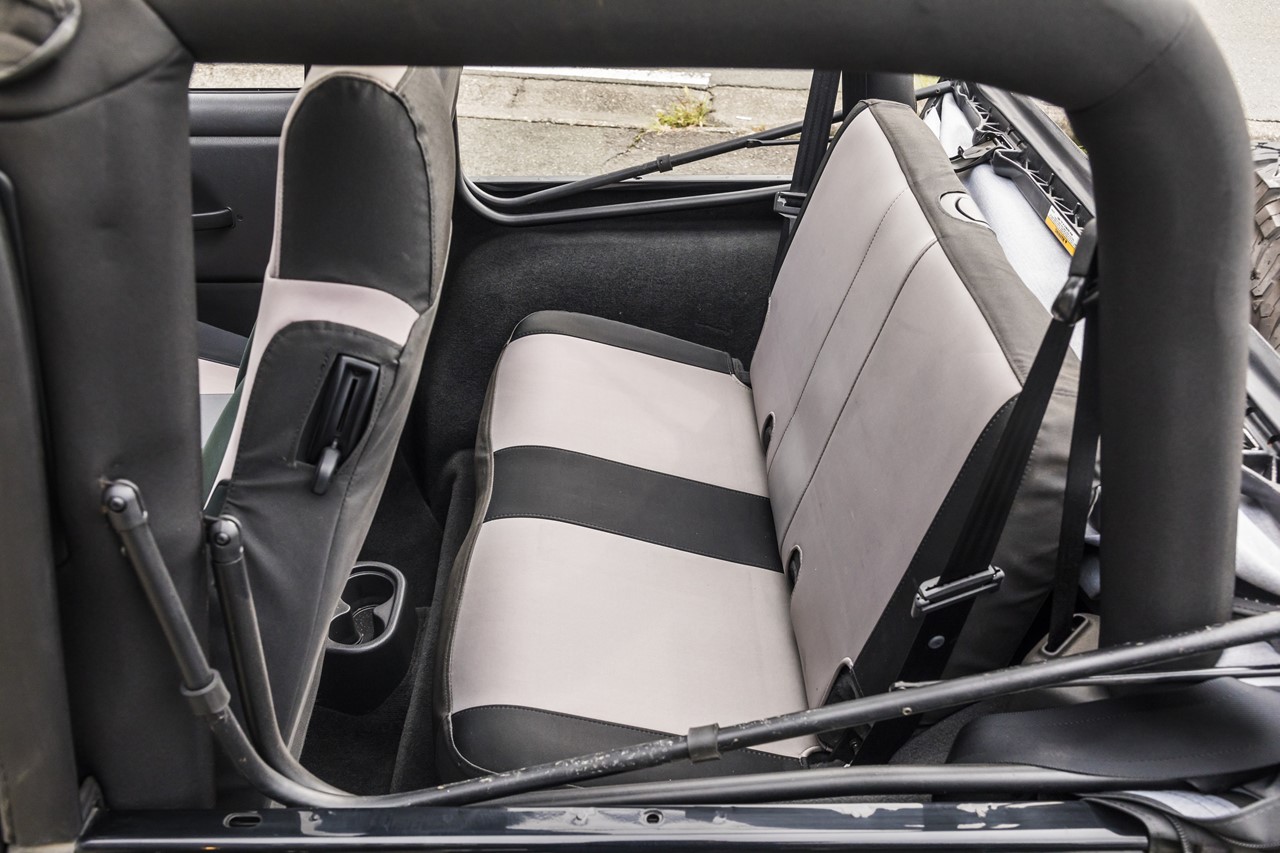SMITTYBILT社製のソフトトップを畳むとドアやロールバーを残して簡単にオープン状態となる。開放感はバツグンだ!