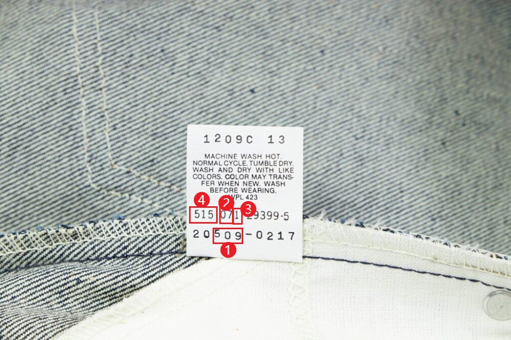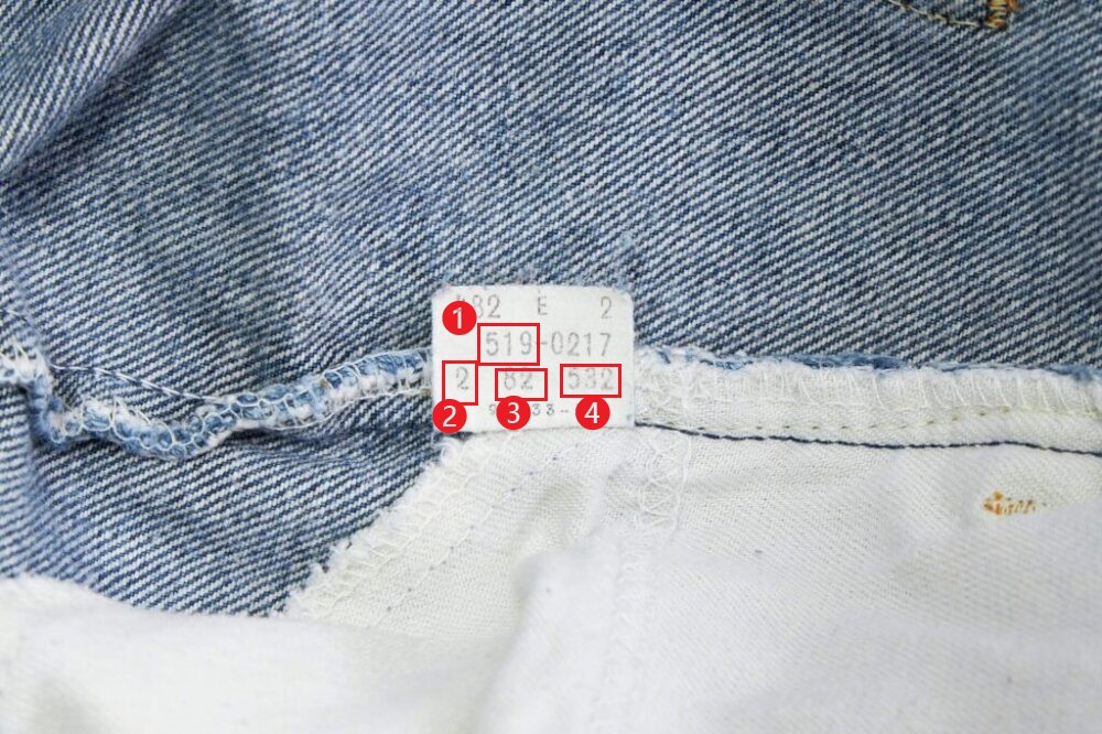 70年代以降の内タグには製造年月が記載(❶品番/❷製造月/❸製造年/❹工場番号 )