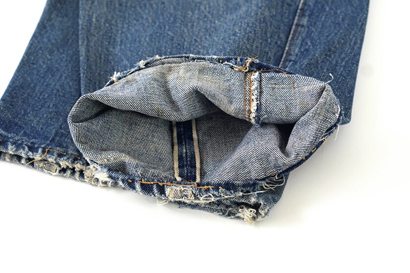 赤耳付きの有無も年代判別のひとつの判断材料となる。1980年代中頃にセルビッジ生地が生産終了となるため、ついていたらそれ以前となる。