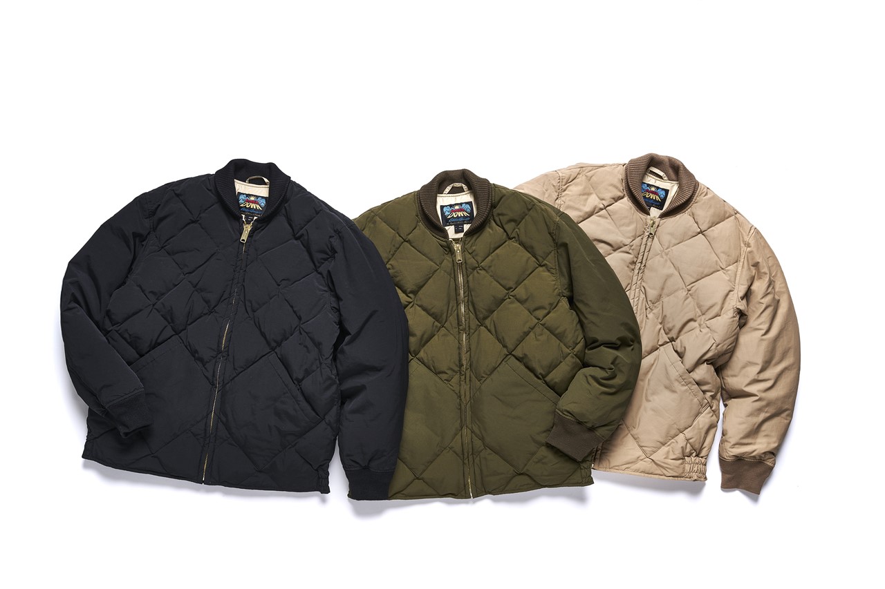 1936年に誕生したアメリカ初のダウンジャケット。動いてもダウンが偏らないように施されたダイヤモンドキルトは画期的であり、1940年代にはアメリカで特許が取得された。生地は撥水加工が施されたコットンナイロン生地なので、多少の雨でも保温性を保持する。各3万8500円