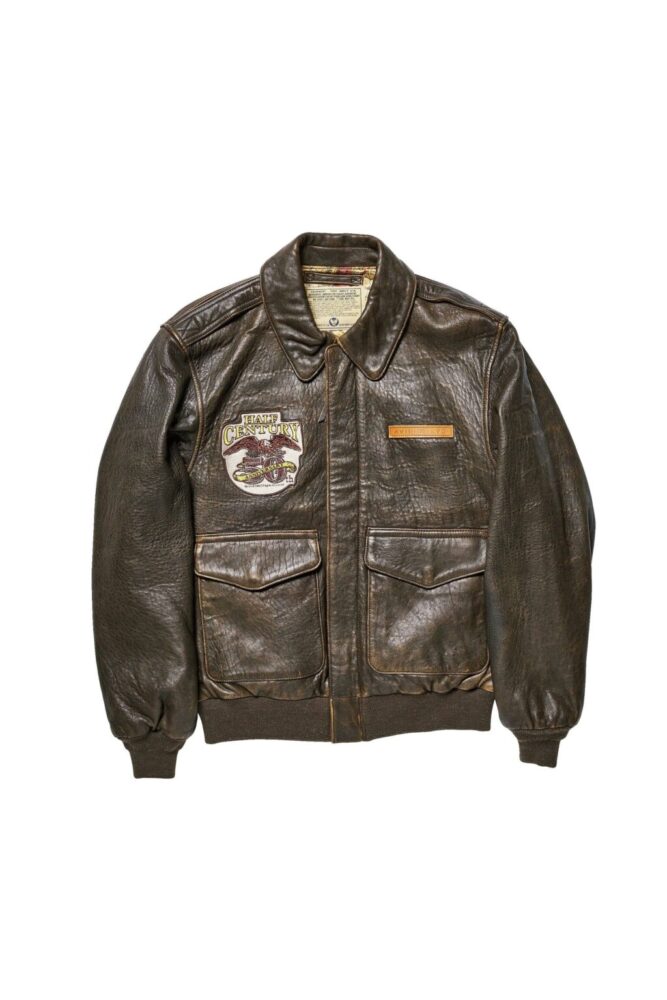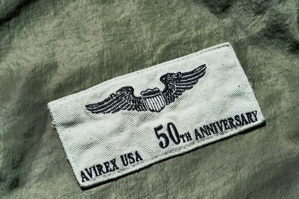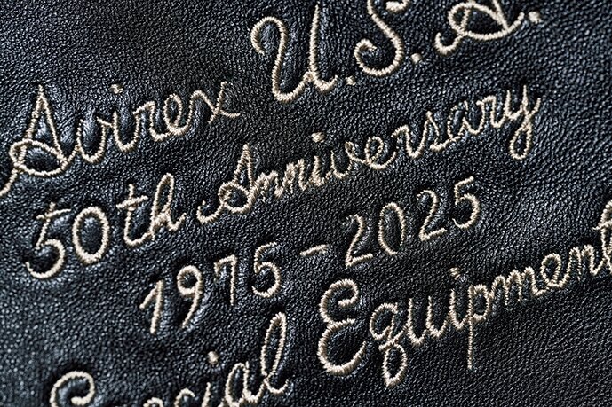 羊革を使用した人気モデル「A-2 ANTIQUE LAMB」をベースにアンティーク加工を施し、よりヴィンテージライクな1着へと仕上げた。右胸につけられたパッチとライニング中央には50周年モデルであることがわかるグラフィックが堂々と付けられた。16万2800円