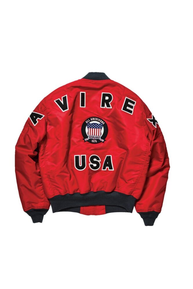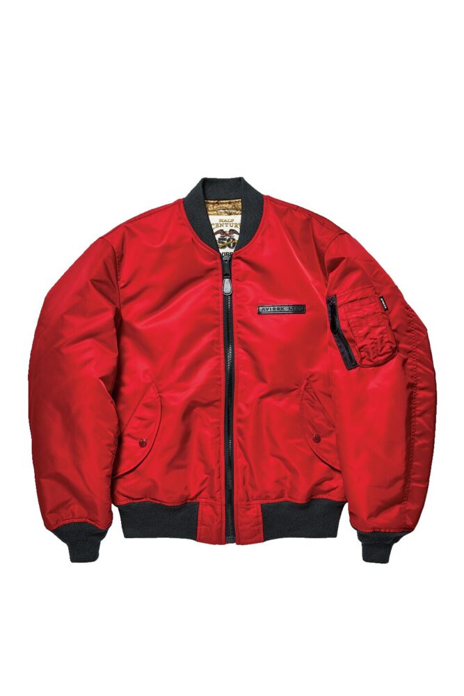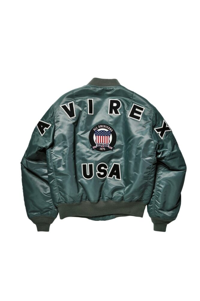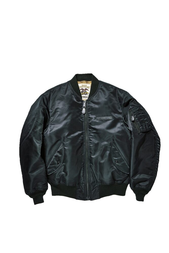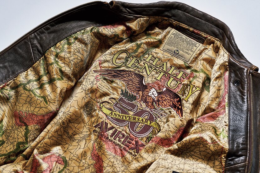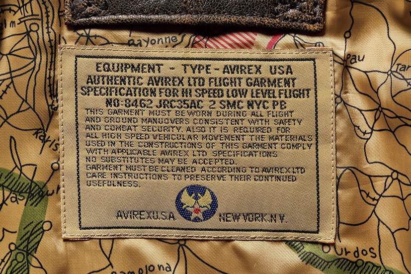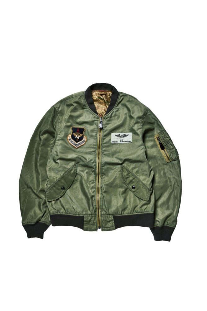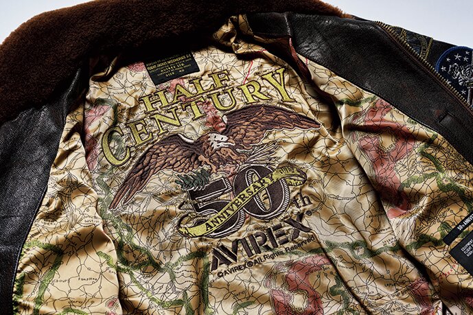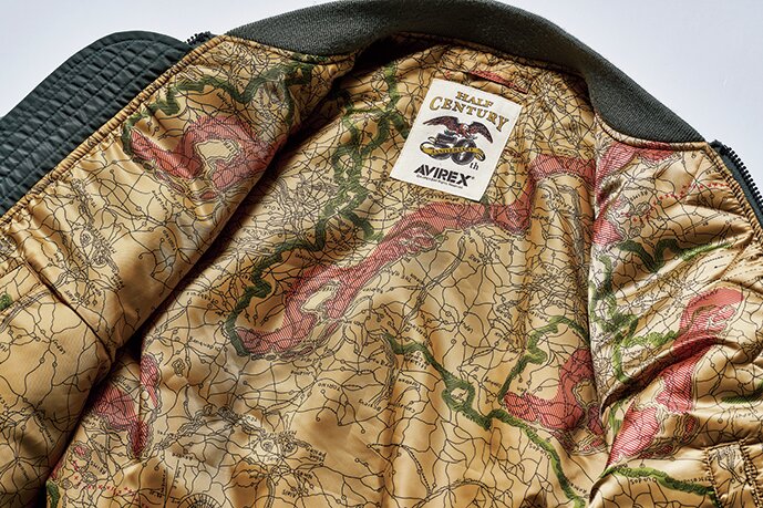 アヴィレックスの設立年と同時期の1975年に作られていた最後期のL-2B(MIL-J-7448J)をサンプリングして製作。ライニングには同ブランドのレザージャケットにも使われているマップ柄を装備し、ユーズド加工を加えることでヴィンテージらしい表情を演出。6万6000円