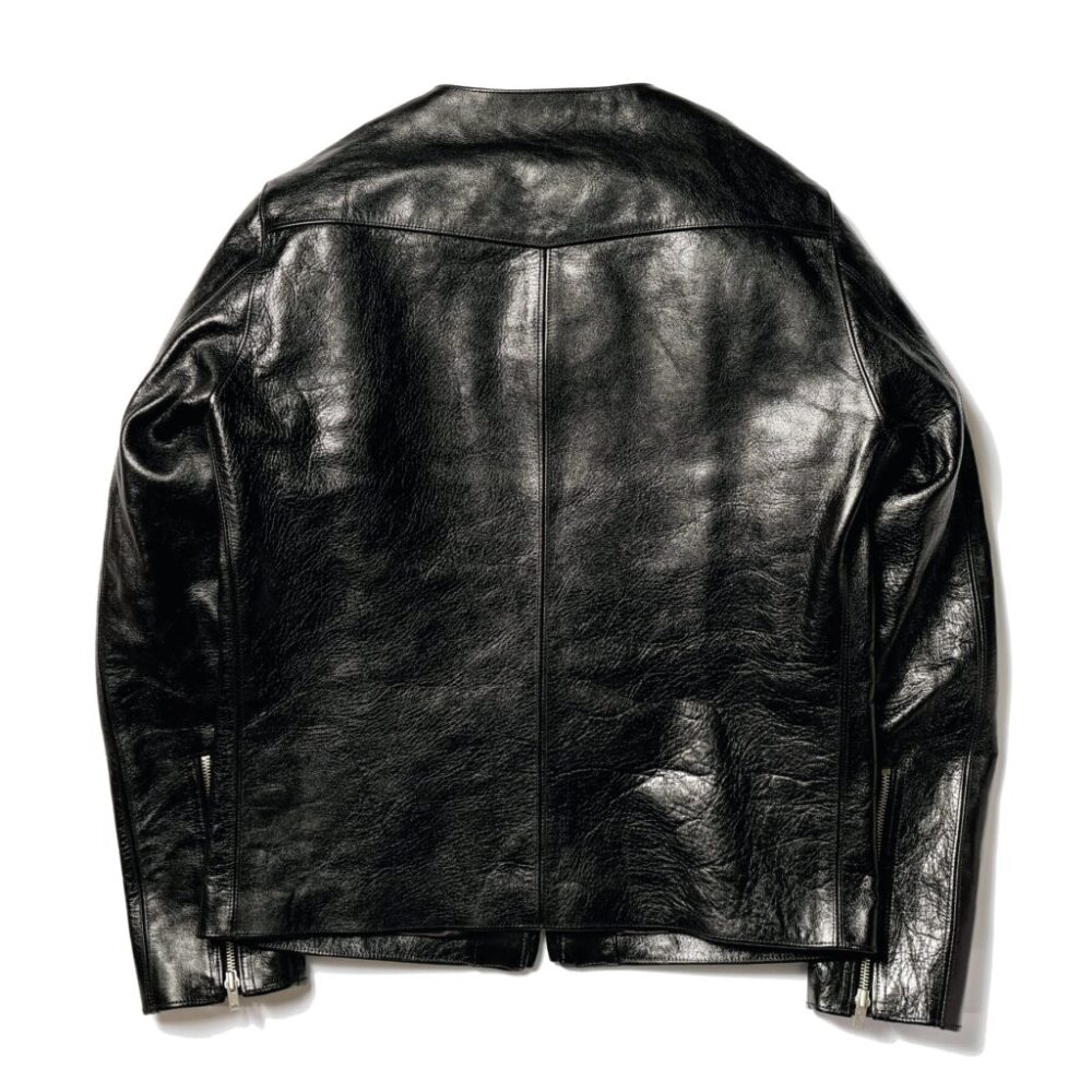 ファインクリークレザーズのアイテムは、将来着込んでいった時の姿までをも考えて作っている。このトライアングルも例外ではない。1930年代のスポーツジャケットをベースに、1.8〜2.0㎜厚のフルベジタブルタンニン鞣しの馬革を用い、着込むほどにうっすらと“面”で茶芯が出現するのが特徴だ。背面はヨークも設けずに贅沢な一枚革仕様。革本来のトラや血筋も楽しめ、レザーラバー垂涎の仕上がりとなっている。着込んでいくうちのどんな成長を遂げるのか、今から楽しみだ。24万2000円