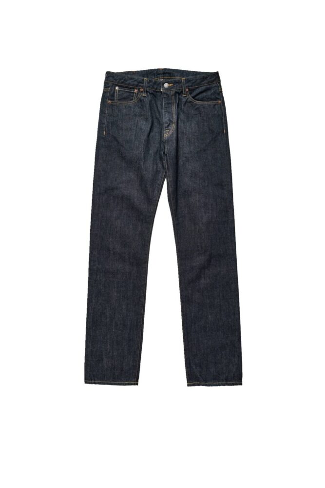14ozのスリムストレート・セルヴィッチデニム。やや厚めの生地でありながら、カーブベルトを採用することでウエスト周りをすっきりと。きれいなシルエットを実現。サイズは31。1万9800円~