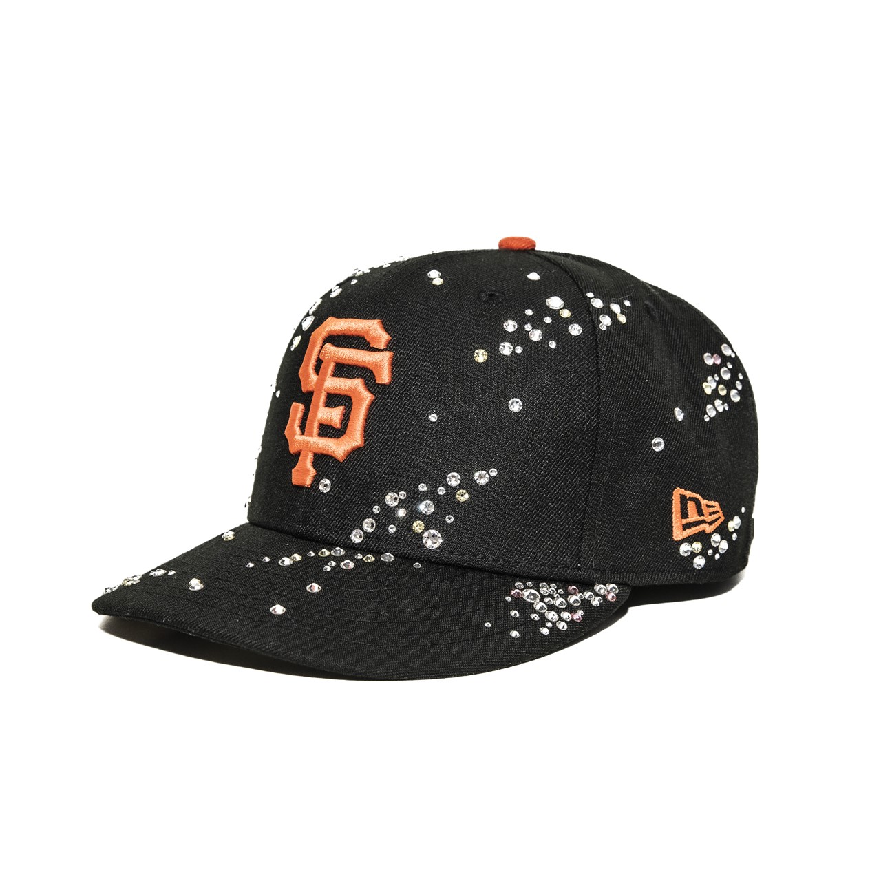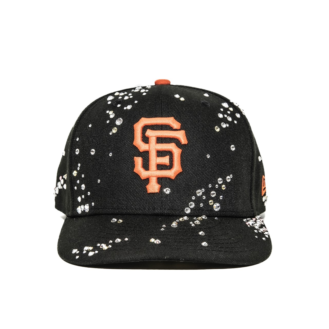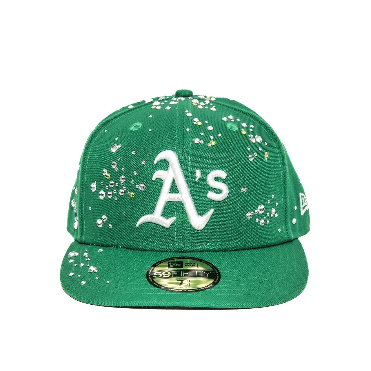 大粒のスワロフスキーをふんだんに使用し、まるで芸術作品のような風格を纏った仕上がり。「Oakland Athletics」と「San Francisco Giants」のベースボールキャップをベースに、Coutureに所属するアーティストが全て手作業で装飾を施している。