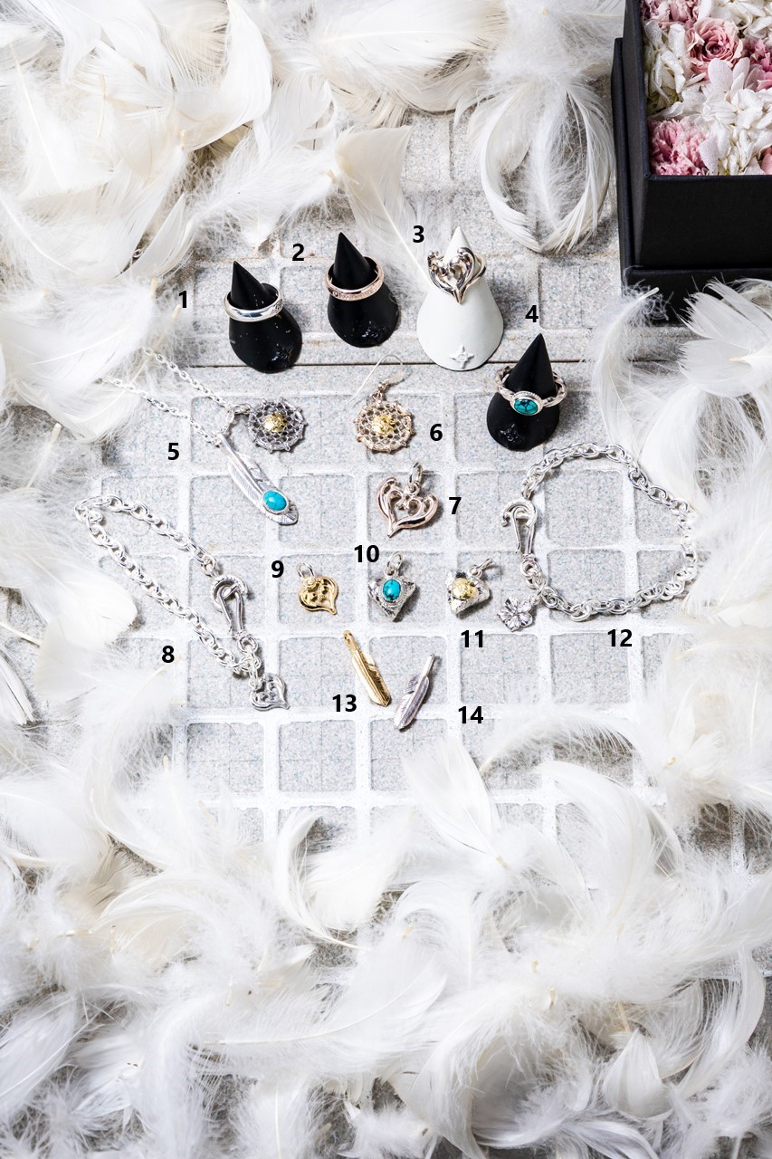 2023年よりラインナップに加わったプラチナシリーズに「カゼキリフェザー」、「ハートフェザー」、「フェザーフック」を追加。プラチナ95%に金や銀など多金属を配合して作られる重厚なプラチナの質感は、シルバーやゴールドともまた違った趣。一味違った高級感を身に纏いたい人はこちらで決まりだ。