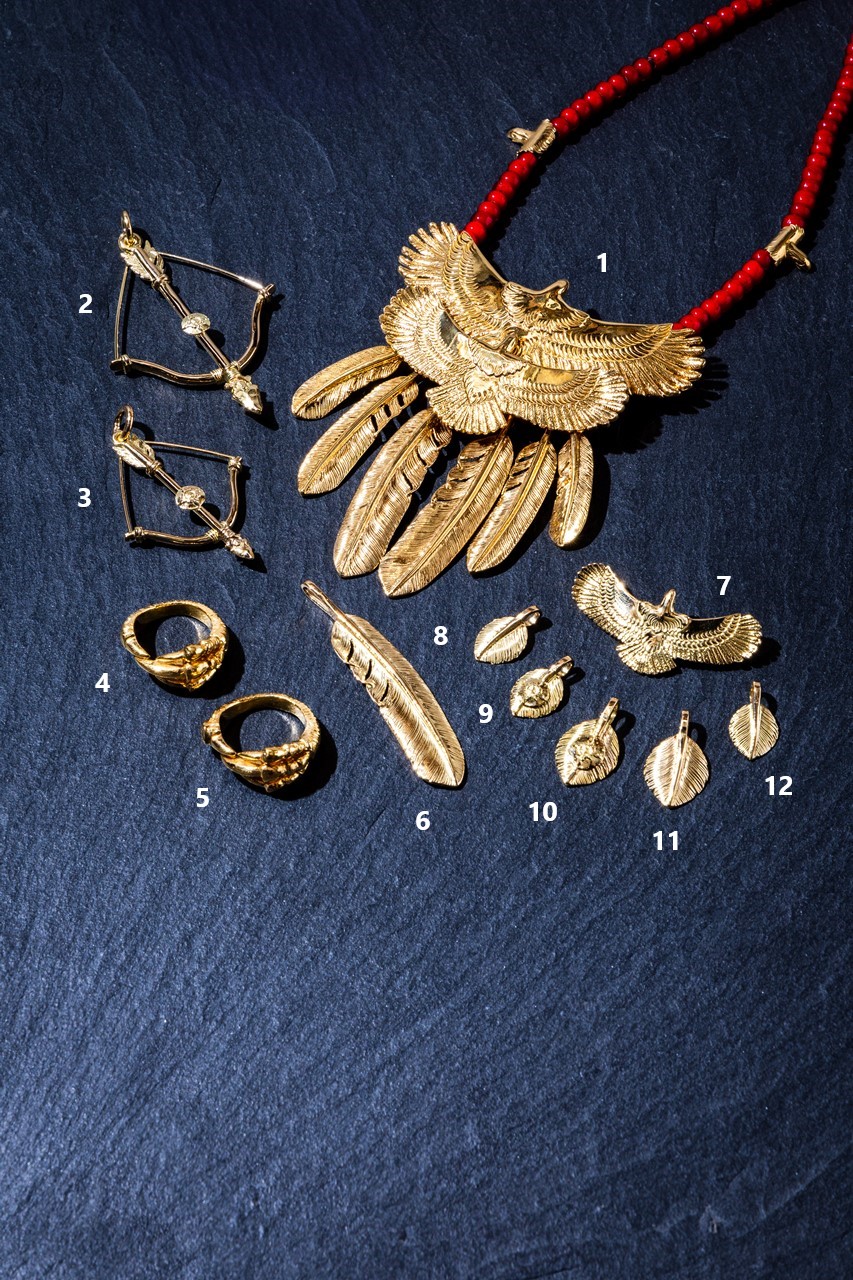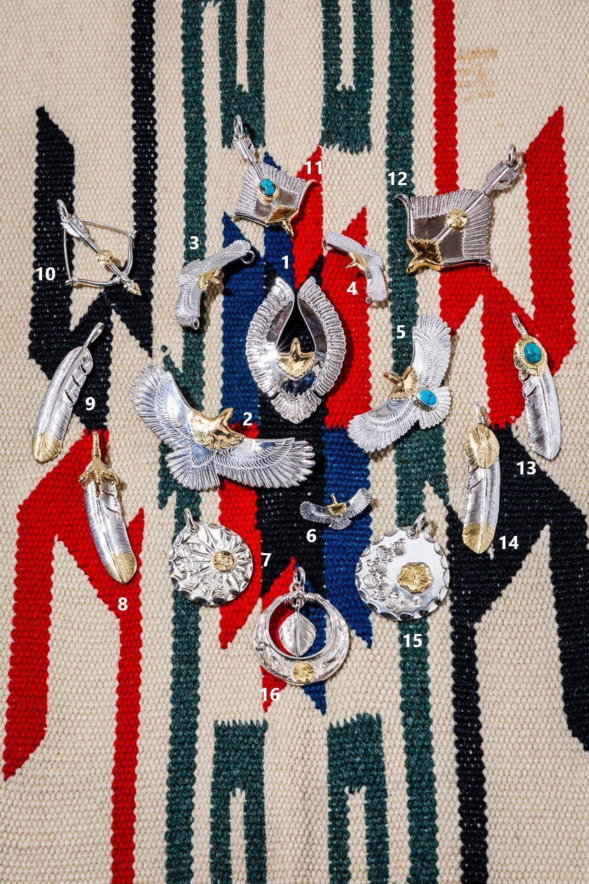 自分達のルーツであるネイティブアメリカンの伝統技法を尊重しながら、それにとらわれない自由な発想でシルバーの新境地を開拓し続けるファーストアローズ。創業時より作られるイーグルやフェザーなども定番でありながら、高い技術力とデザイン性で唯一無二の存在感を放つ作品へと昇華させている。