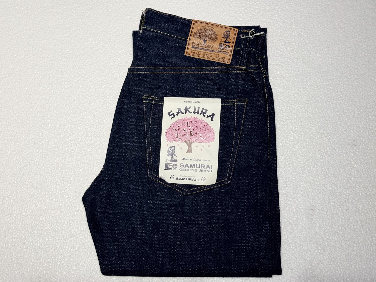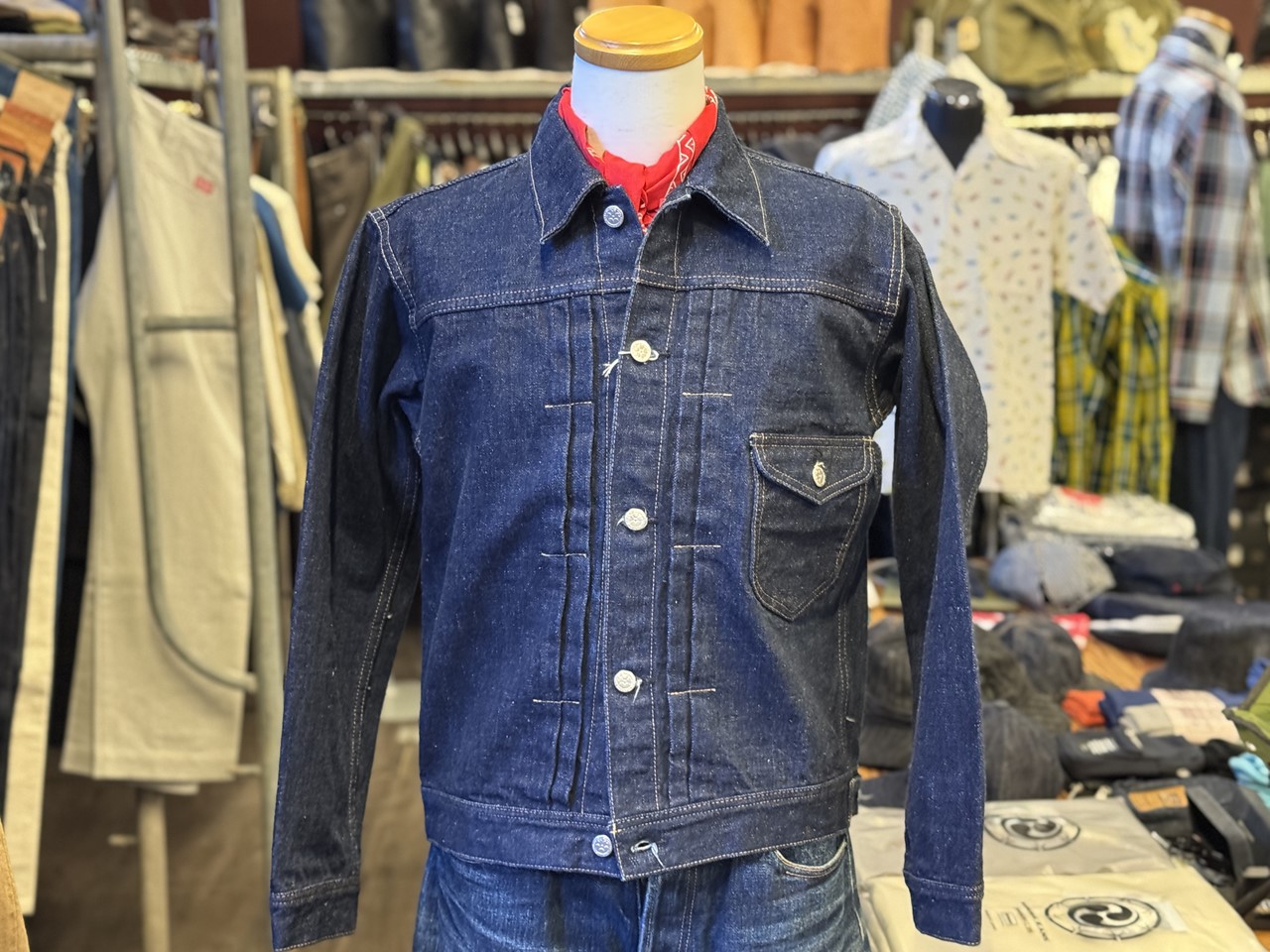 いずれも藍+の新企画「桜シリーズ」。藍+桜シリーズは「18oz藍+桜サムライコットンセルビッチデニム」を採用。経糸はオリジナルの強撚の硬いムラ糸を、インディゴ染料と天然藍を特殊な手法で混ぜ合わせロープ染色したもの。緯糸は自家製綿「サムライコットン」を微量ミックスさせた独自のムラ糸を、桜から抽出した特別な染料で、桜色に染め上げた糸を使用。藍+デニムが持つ豊かな色合いと、ほんのりピンクベージュがかった桜色が相まって、非常に美しい表情になっている。