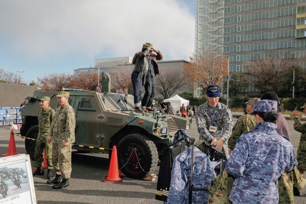 今回も迫力満点だった自衛隊エリア。高機動車の上に乗って写真を撮ったり、自衛隊仕様の腕時計KENTEXの販売や、ミリタリーショップと普段ではなかなかお目にかかれないとあって、大人も子どもも大興奮!