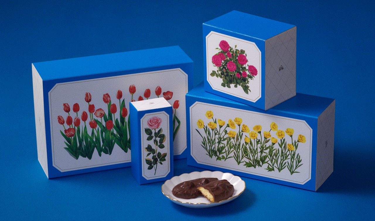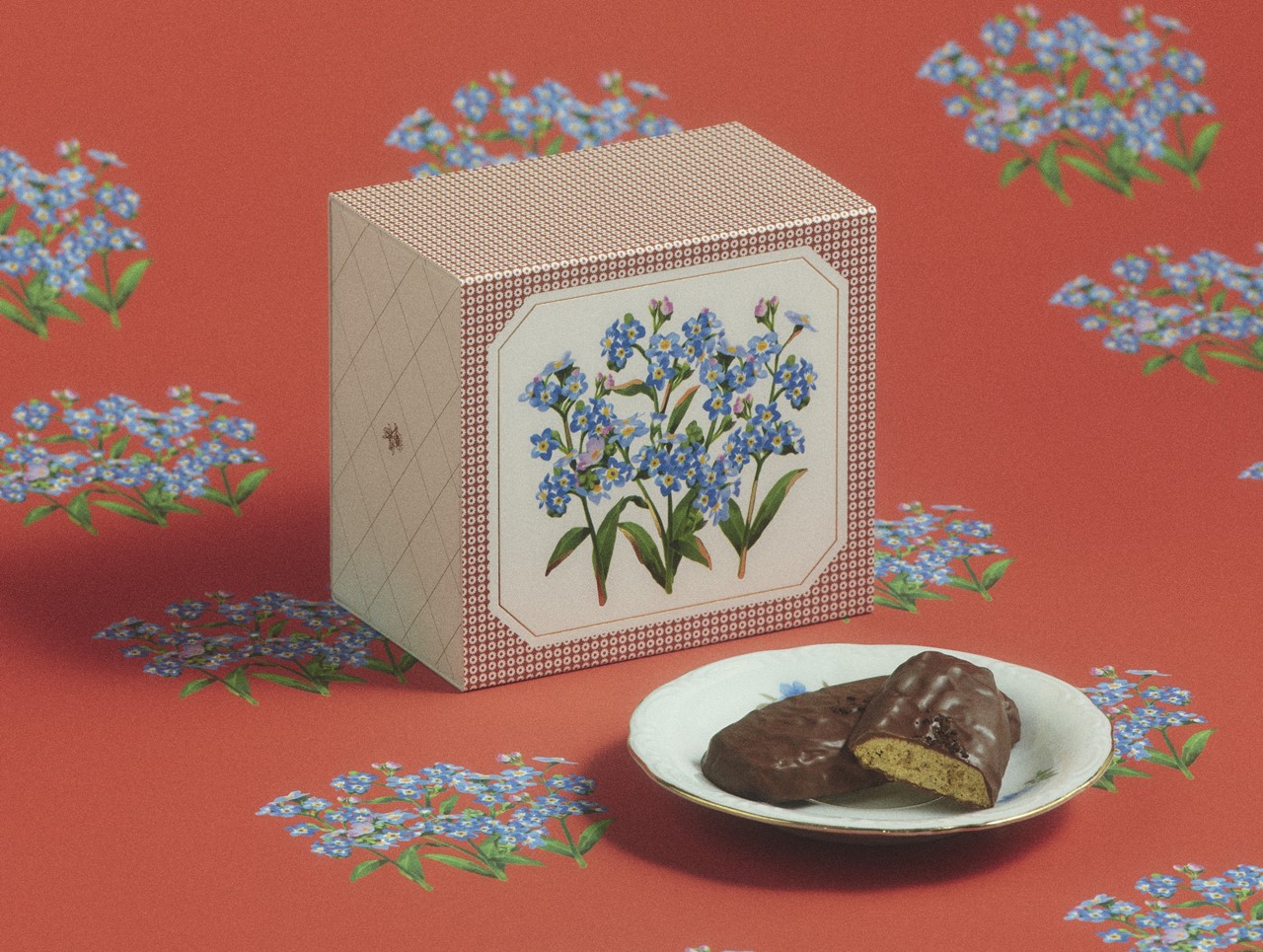 書物やアートと共に楽しむ豊かな時間に寄り添えるお菓子をイメージし、本と一緒に楽しむドリンクとして親しまれチョコレートと相性が良い素材の一つであるコーヒーが選ばれた。モカはコーヒーの中でも歴史が深く、フルーティーな味わいが特徴である。ほろっとしたサブレ生地の食感やチョコレートの味わいと合わせてモカコーヒーを存分に味わえるよう、生地の中には微細なパウダーを、トッピングには存在感のある粗挽きを使い分けて仕上げている。8枚入・1,620円(税込)。
