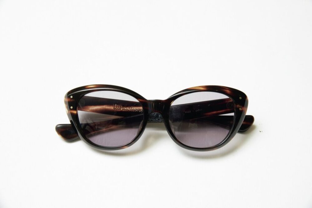 「ややつり上がったボストン・ウェリントン型のセルフレームで、無駄のない洗練されたデザインにグッと来ました。10年以上前にはなるのですが、バージニアが着用していたサングラスをメンズ仕様にアレンジして『アトラクションズアイウエア』で[ザ フラミンゴ]というモデルを作ったんです。これまでにも多くのアイウエアを製作してきましたが、ウィメンズアイテムから着想を得てアレンジして作ったのは初めてですね。ちなみにモデル名の『フラミンゴ』はラスベガスに建てられたホテルの名前でもあり、脚の長いバージニアの愛称からインスパイアされたものです」