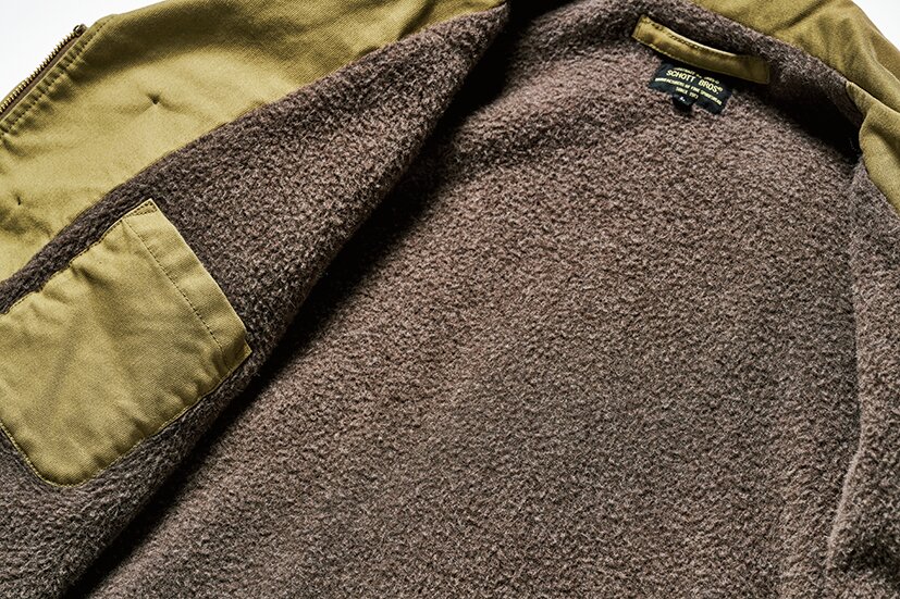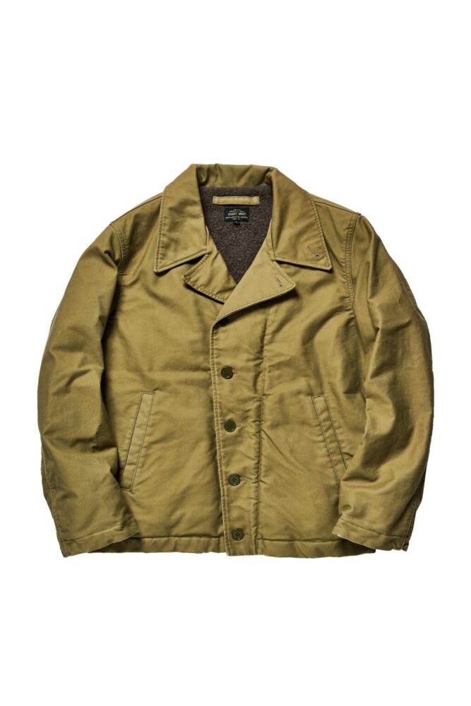 アメリカ陸軍のM-41ジャケットから派生・改良された、陸上や甲板作業員用のモデル、N-4をブラッシュアップさせたモデル。1940~1950年代のデッキジャケットに使用されていた細畝のピケ素材をイメージした生地を採用している。胴裏にはウールアルパカ混の生地を使用し、防寒性にも優れている。5万7200円